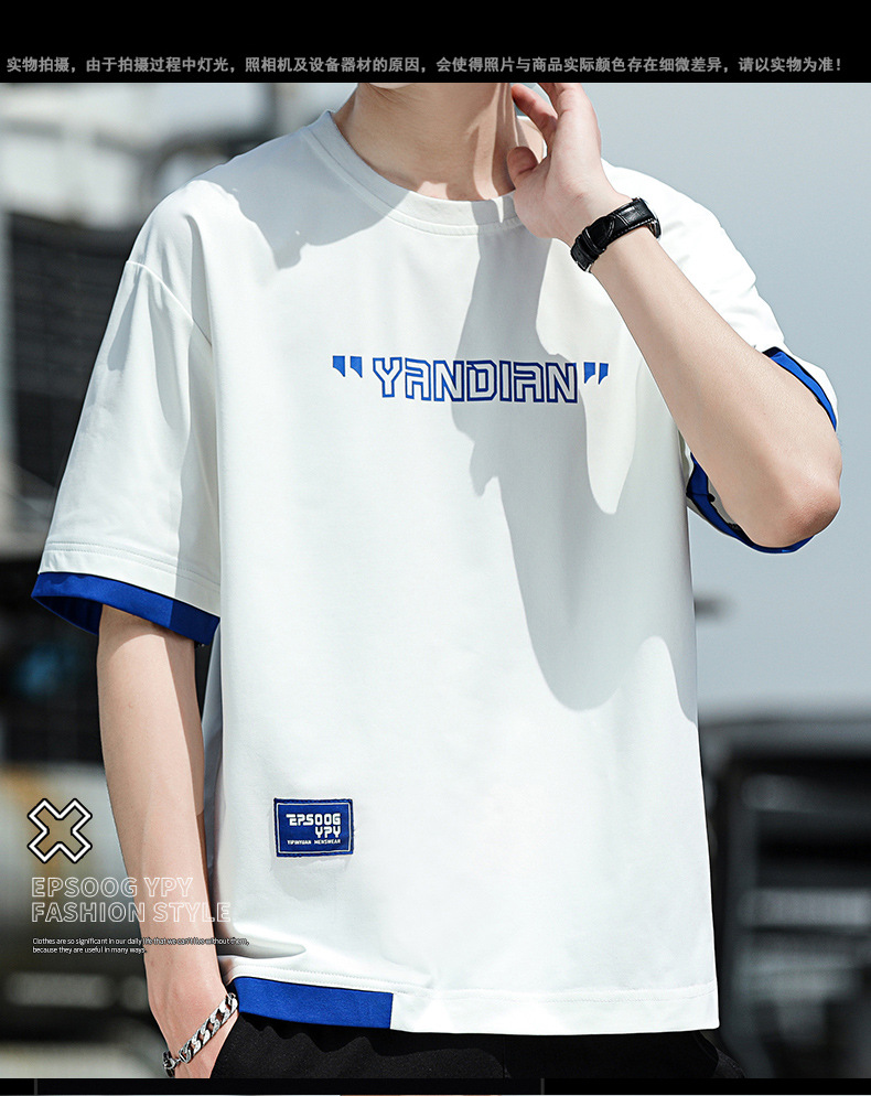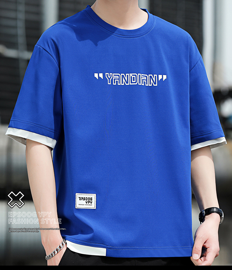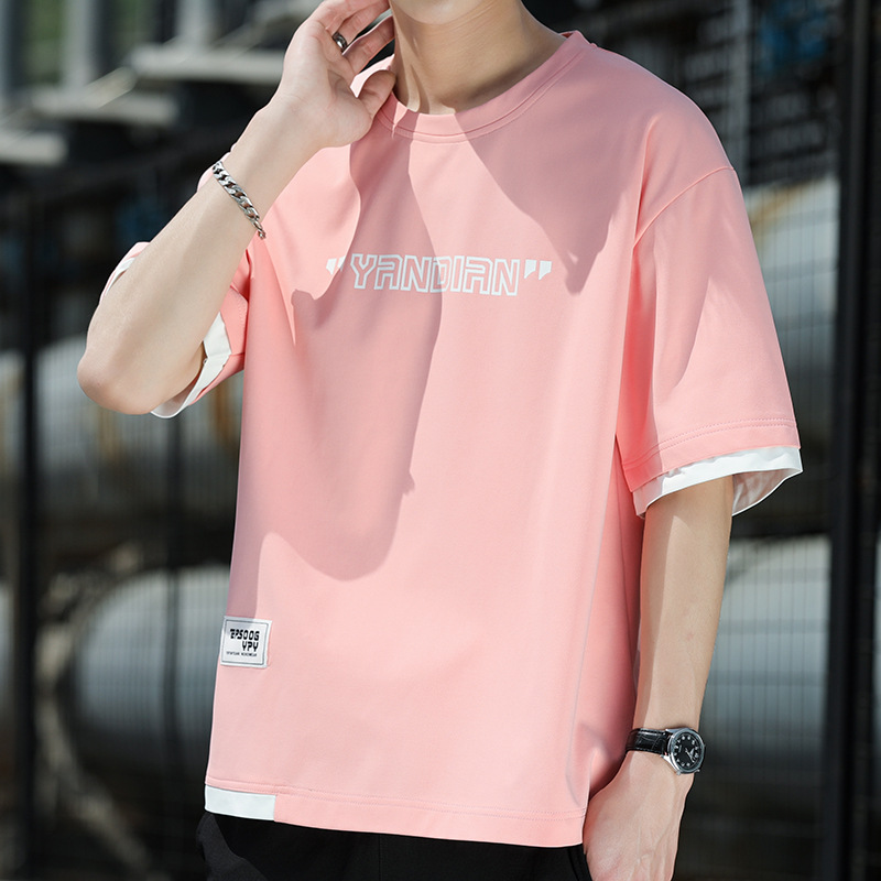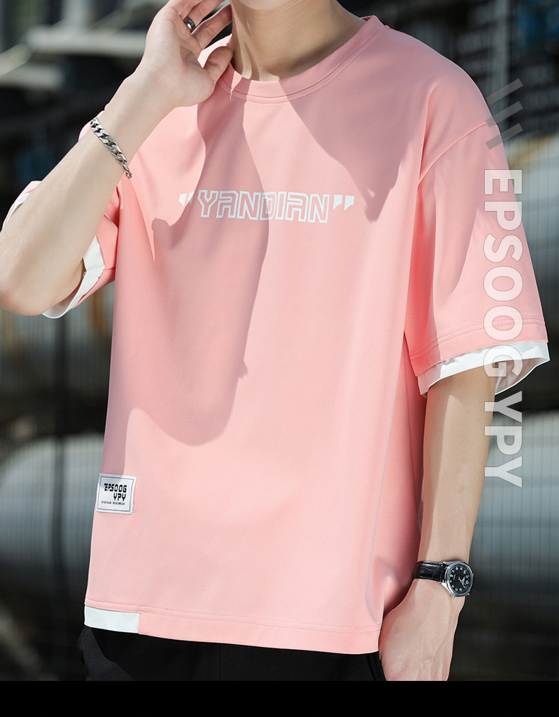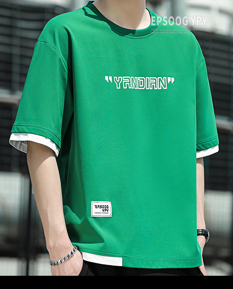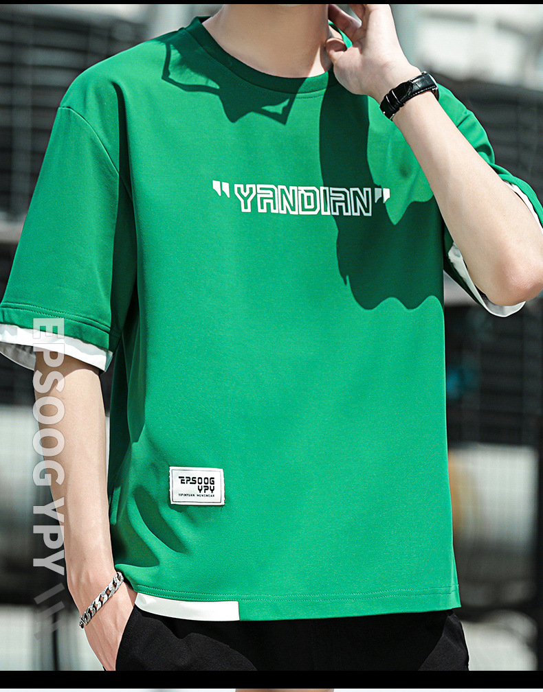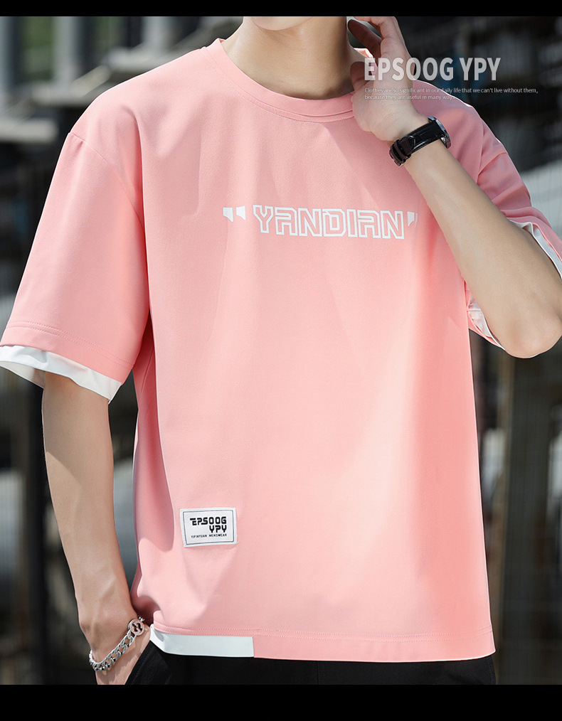 가짜 투피스 반팔 티셔츠 남성용 여름 프린트 올매치 반팔 티셔츠 베이스 레이어 셔츠 남성용 탑 의류에서 유행스토어 가기
