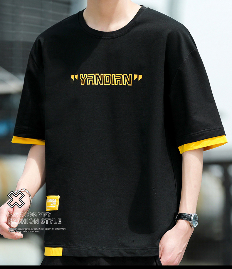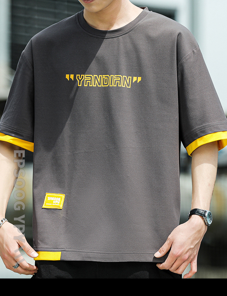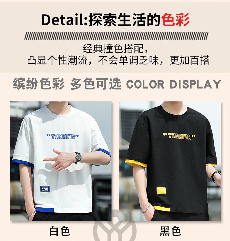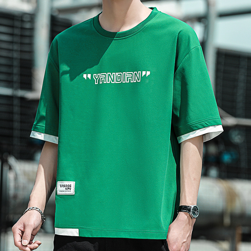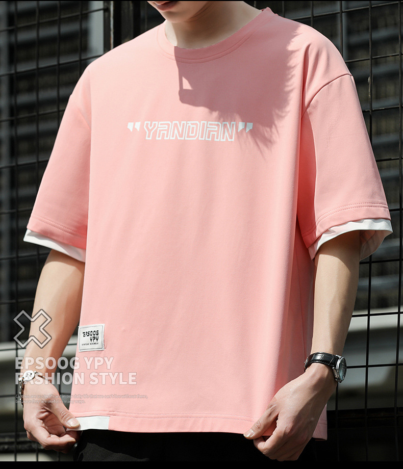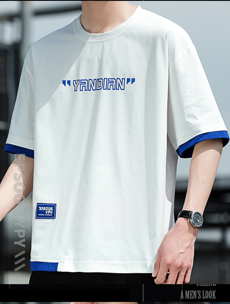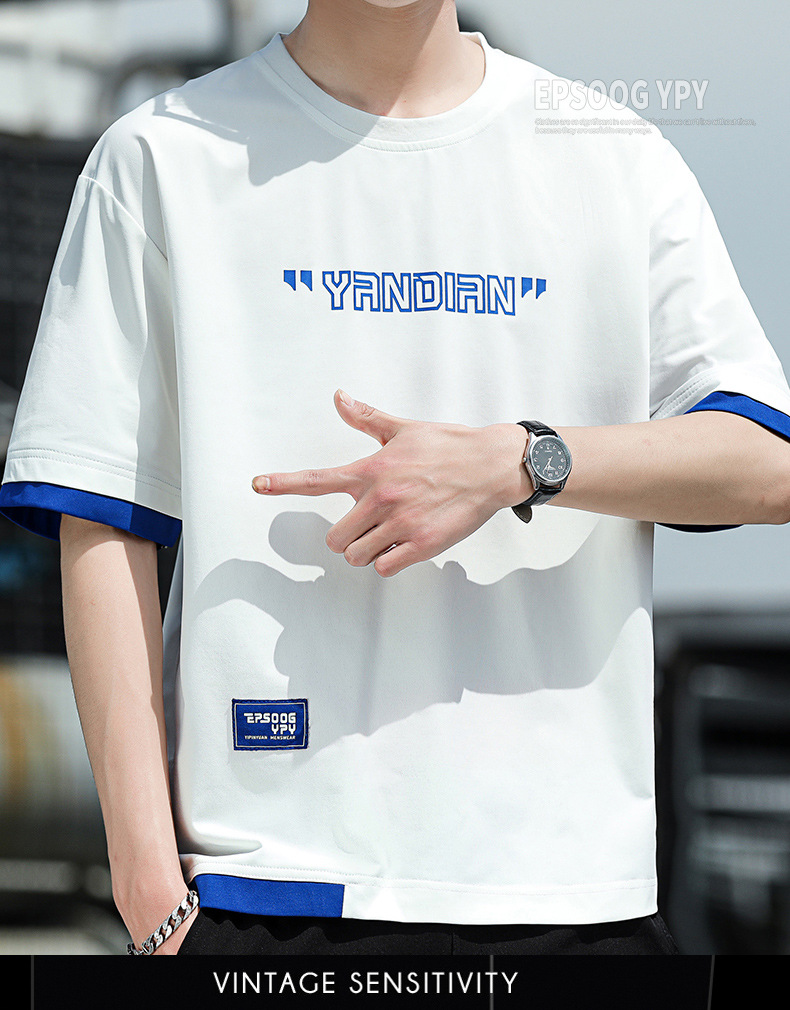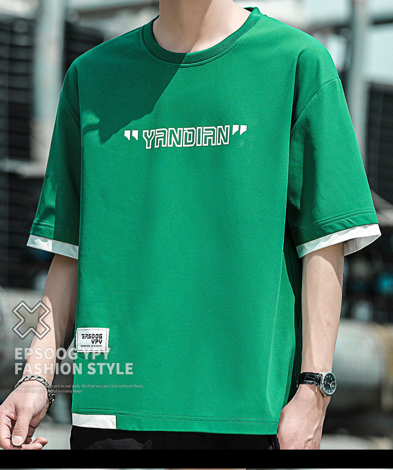 가짜 투피스 반팔 티셔츠 남성용 여름 프린트 올매치 반팔 티셔츠 베이스 레이어 셔츠 남성용 탑 의류에서 유행스토어 가기