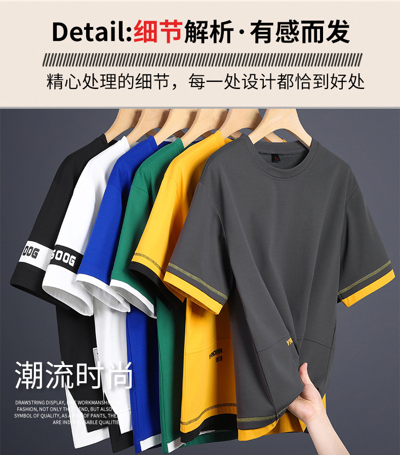가짜 투피스 반팔 티셔츠 남성용 여름 프린트 올매치 반팔 티셔츠 베이스 레이어 셔츠 남성용 탑 의류에서 유행