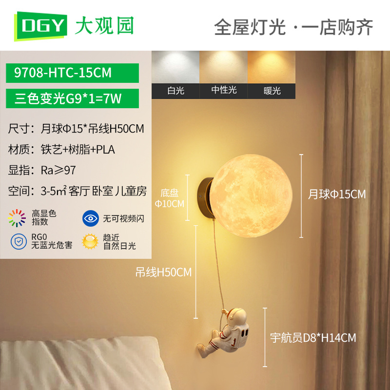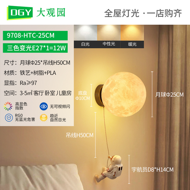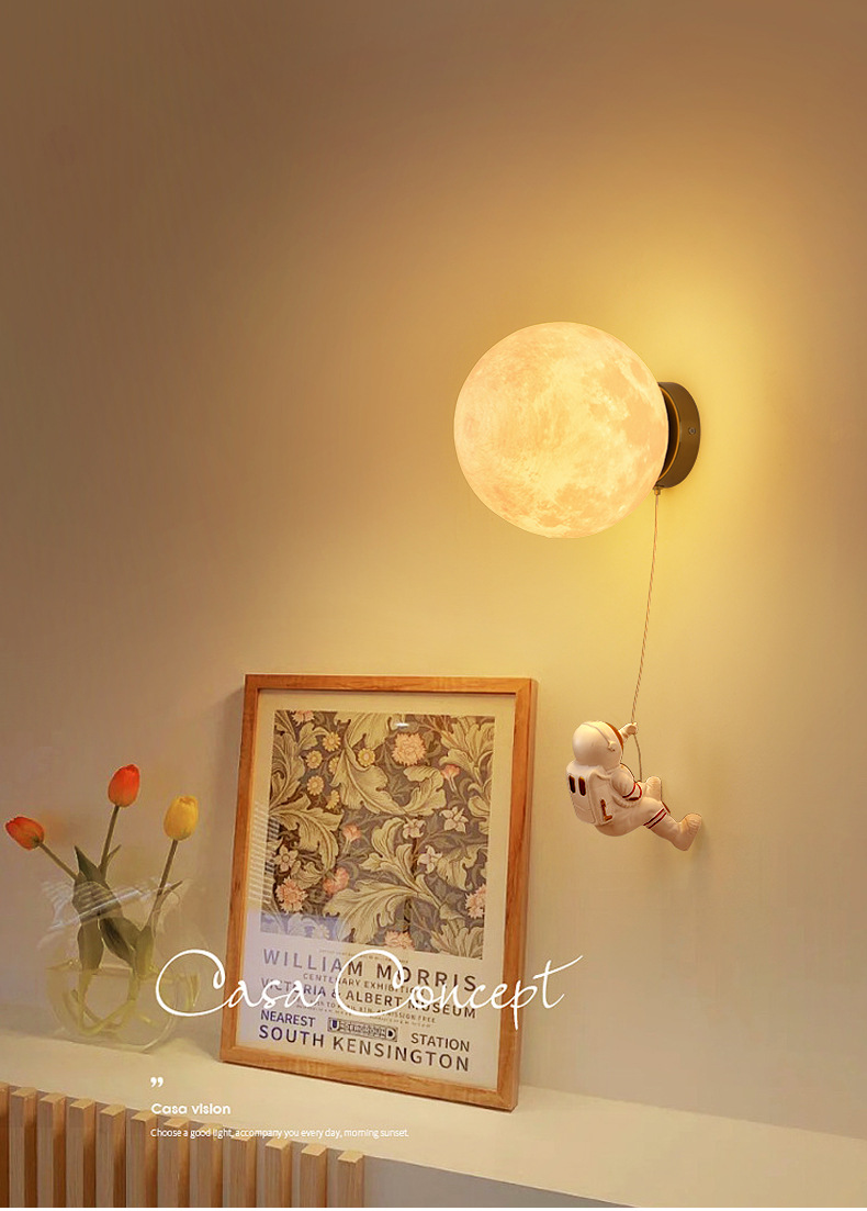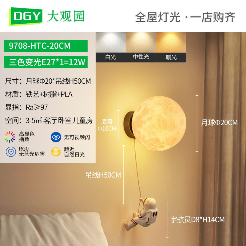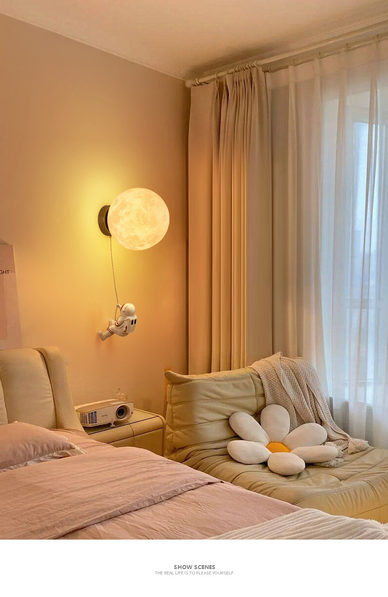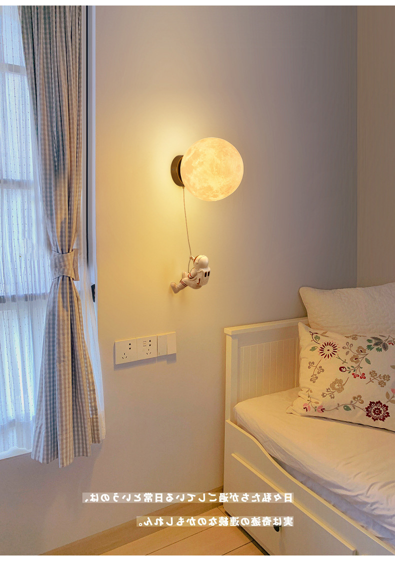 대관원 침대 옆 벽등 야간등 현대적이고 간단한 창의적인 우주비행사 배경 벽등 어린이 방 벽등 542L