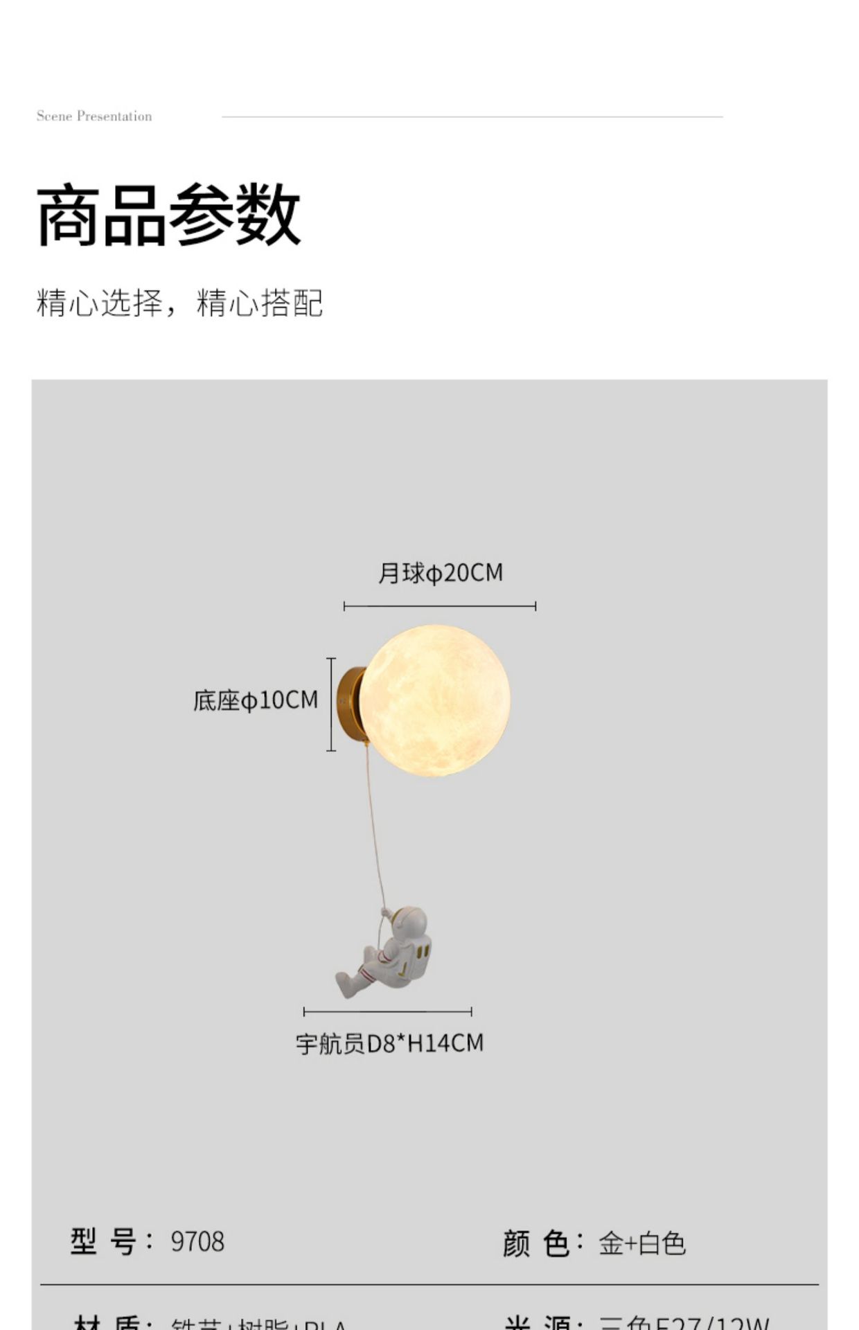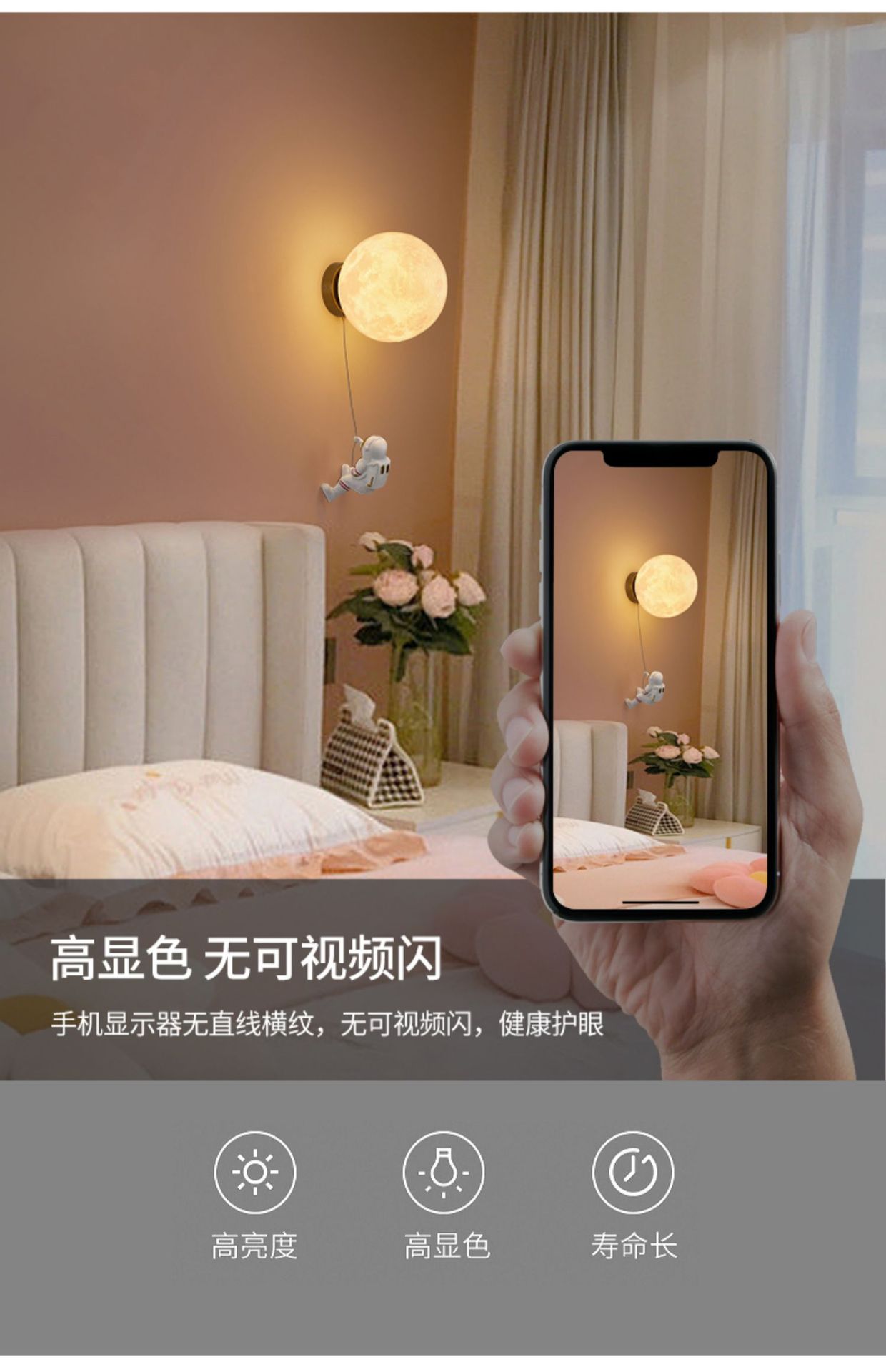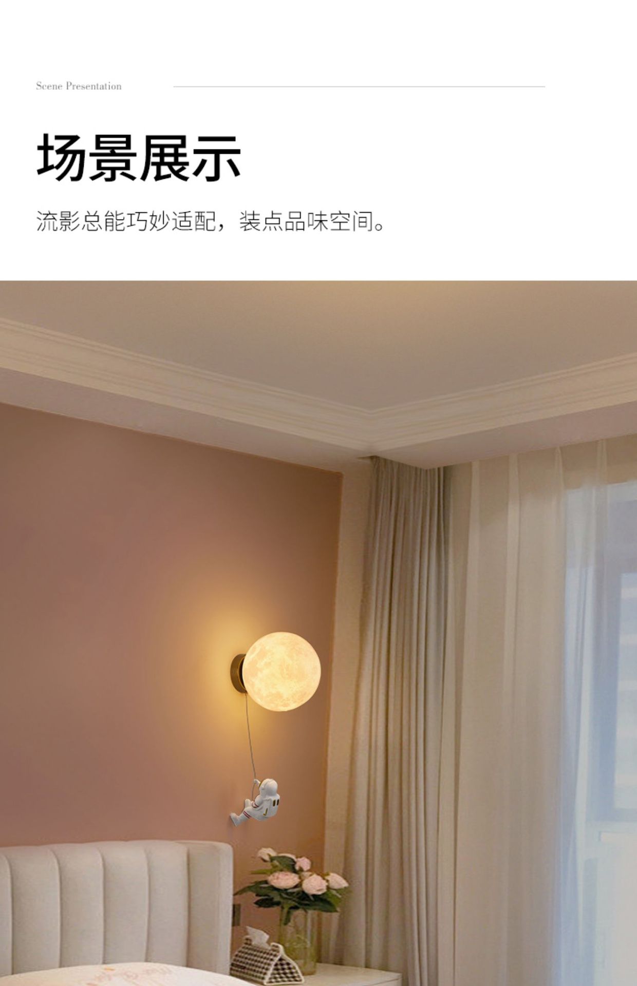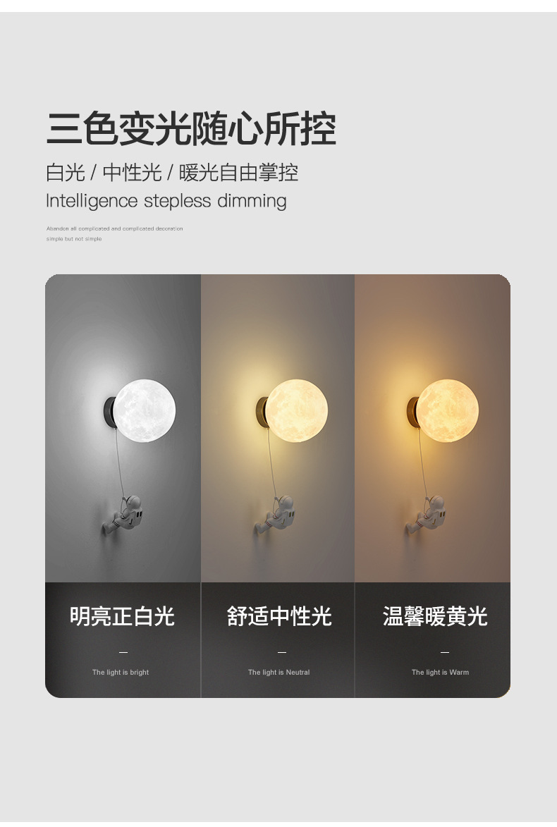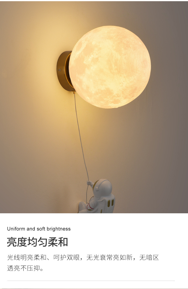 대관원 침대 옆 벽등 야간등 현대적이고 간단한 창의적인 우주비행사 배경 벽등 어린이 방 벽등 542L
