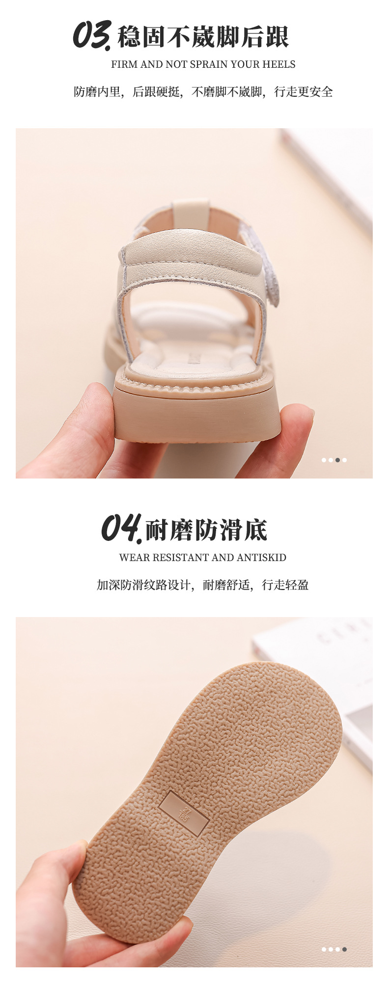 머리 소녀 신발을 대신하여 어린이 가죽 작은 공주 신발 2023 새로운 소녀 오픈 발가락 비치 신발 부드러운 밑창 샌들스토어 가기