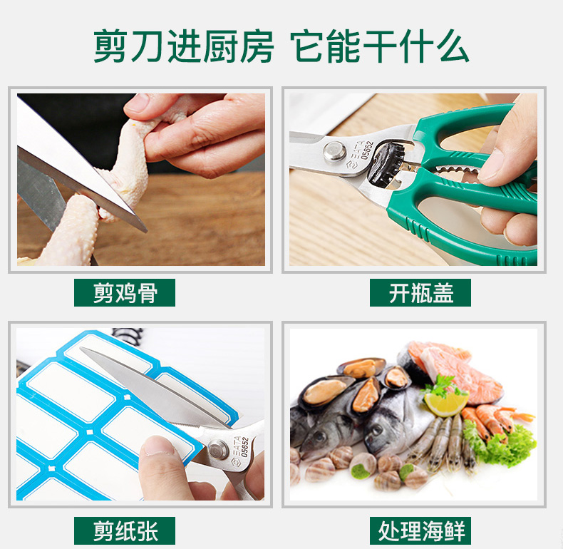 Shida 가정용 주방 가위 다기능 가위 치킨 뼈 가위 스테인레스 스틸 고기 가위 식품 가위 양모 가위 05651