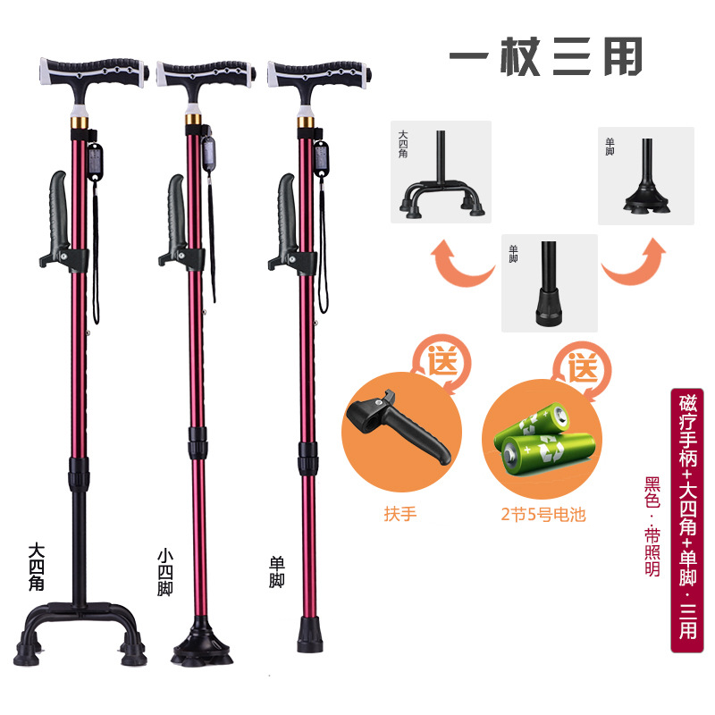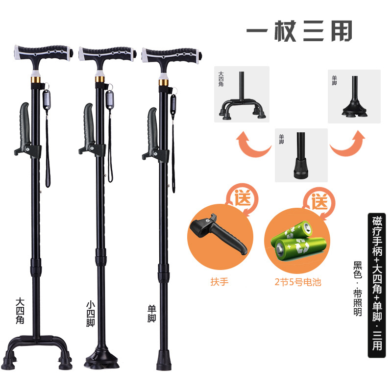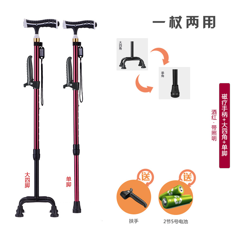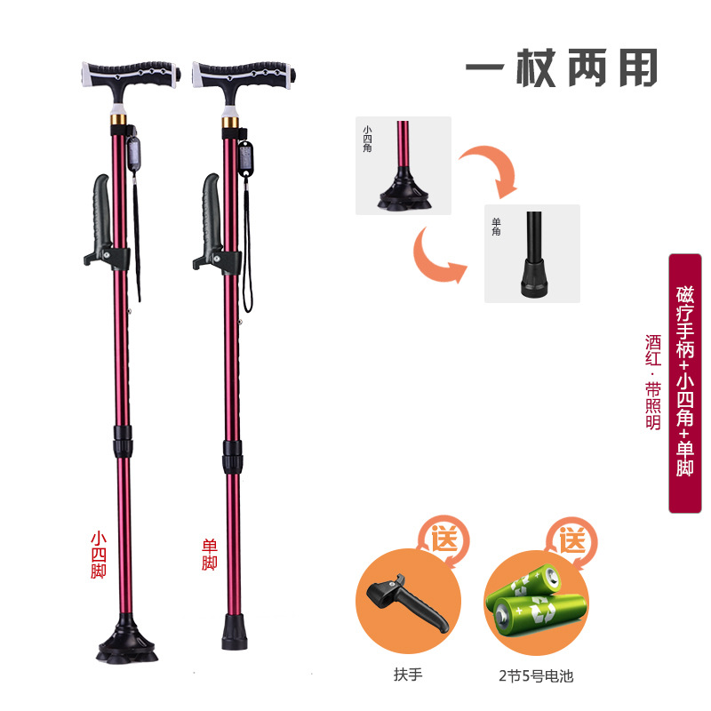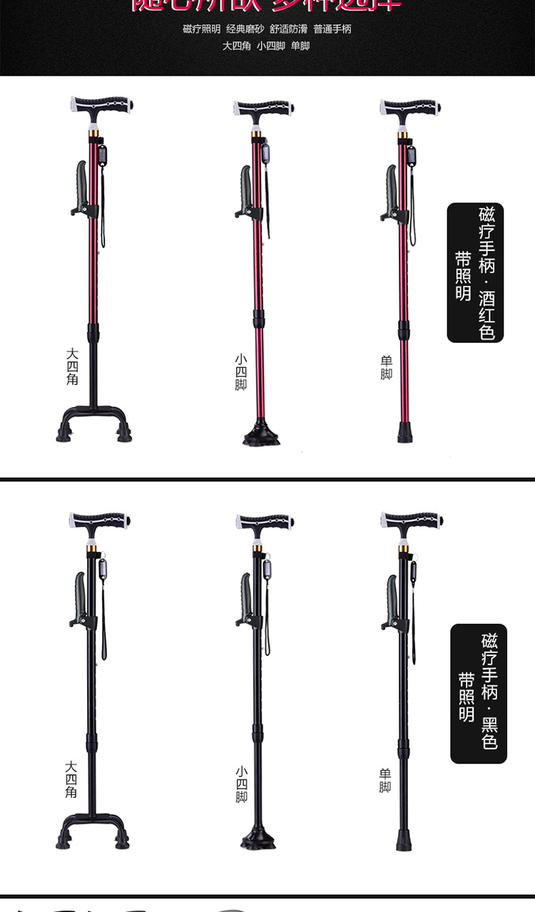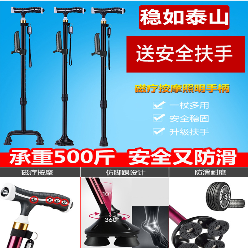 마그네틱 테라피 핸들 미끄럼 방지 라이트 스틱 8 개의 스틱이있는 노인을위한 4 족 보행 스틱 텔레스코픽 워킹 스틱