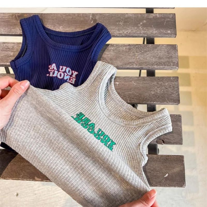 어린이 여름 스트레치 조끼 소년과 소녀를위한 한국 스타일 인쇄 민소매 티셔츠 서양 스타일 아기 라운드 넥 얇은 탑 23스토어 가기
