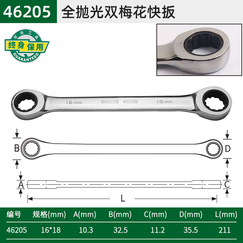 • 46205/완전 광택 이중 매화 퀵 렌치 16x18MM