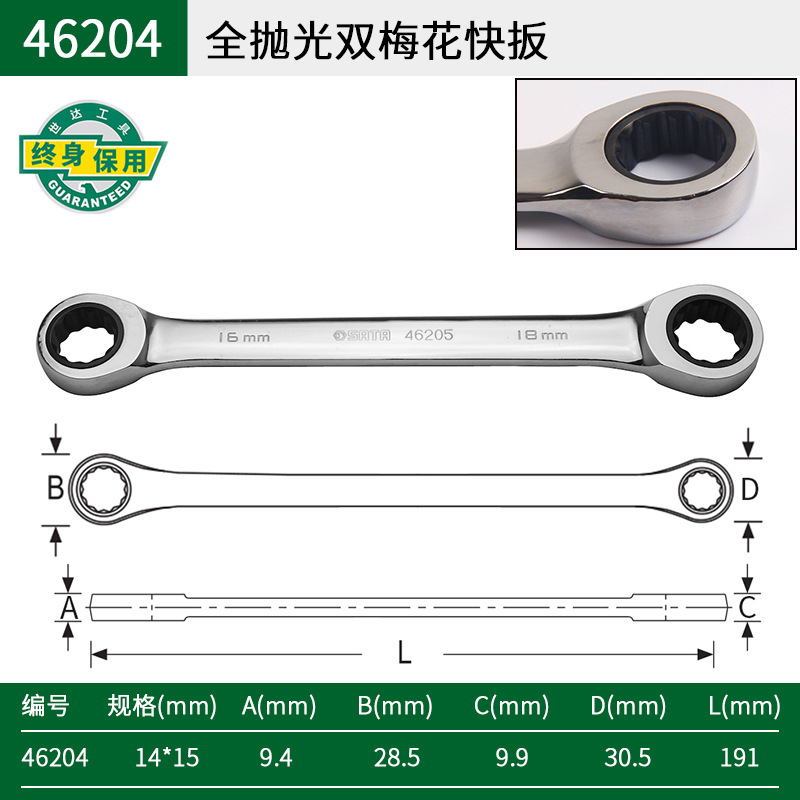 • 46204/완전 광택 이중 매화 퀵 렌치 14x15MM