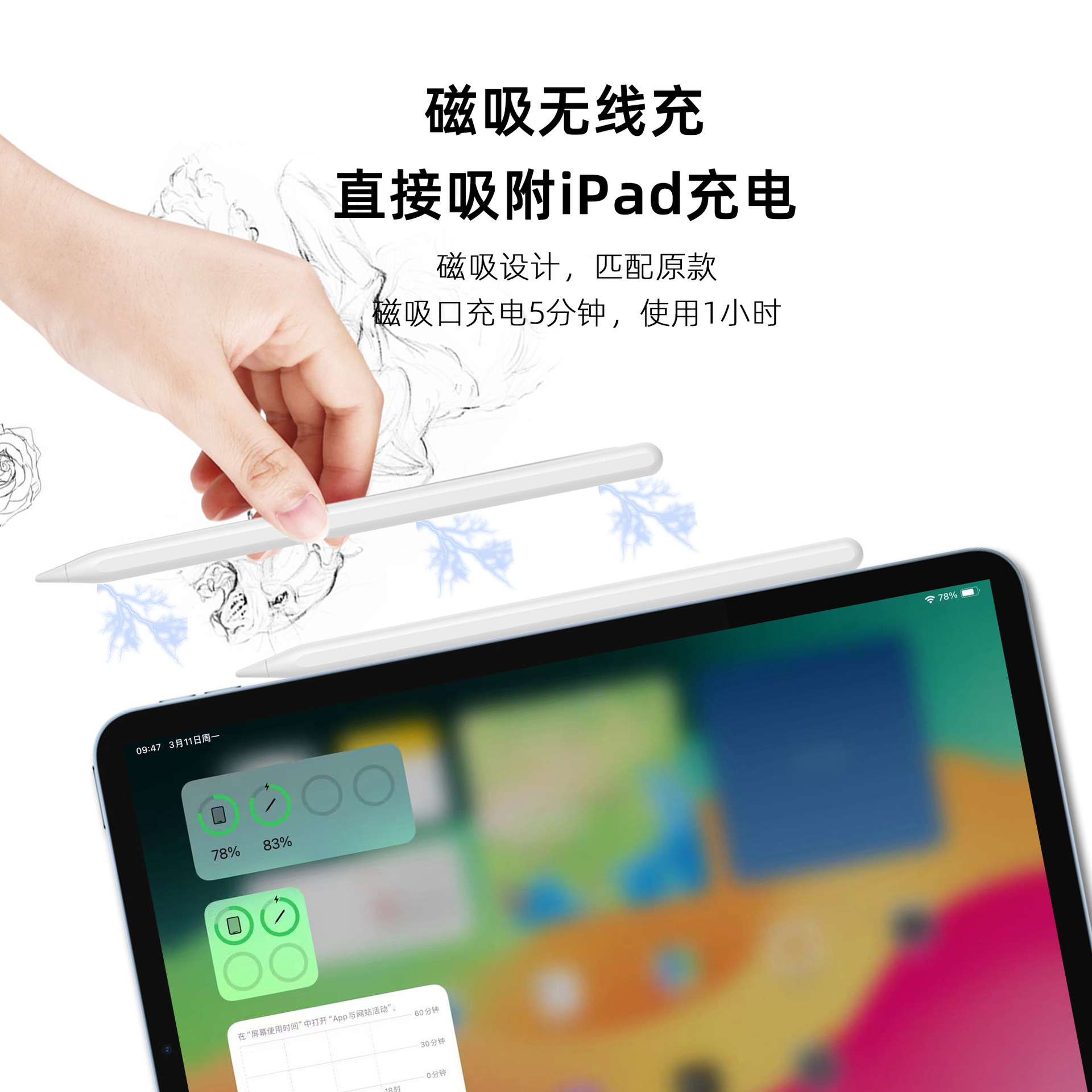 苹果二代笔适用apple pencil磁吸充电ipad电容笔手写防误触触控笔