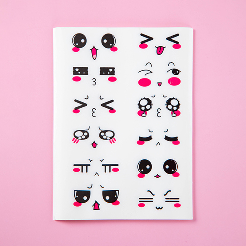 귀여운 이모티콘 스티커, 계란 스티커, 어린이 만화 학생, 재미있는 낙서 얼굴 스티커, 물컵, 핸드북, 웃는 얼굴 스티커