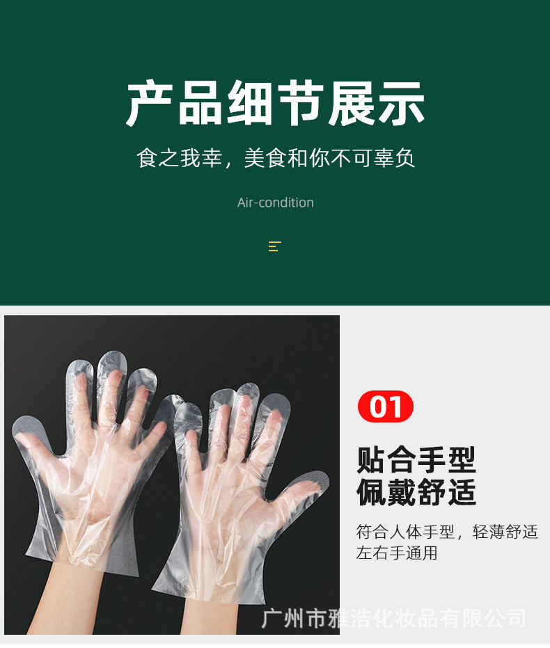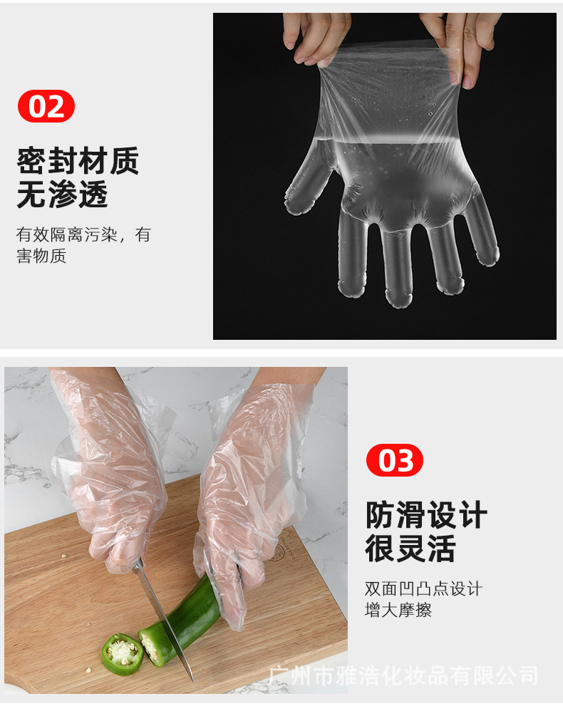 보호 두꺼운 일회용 장갑 케이터링 손 필름 음식 미용 도구 투명 플라스틱 PE 필름 장갑 투명