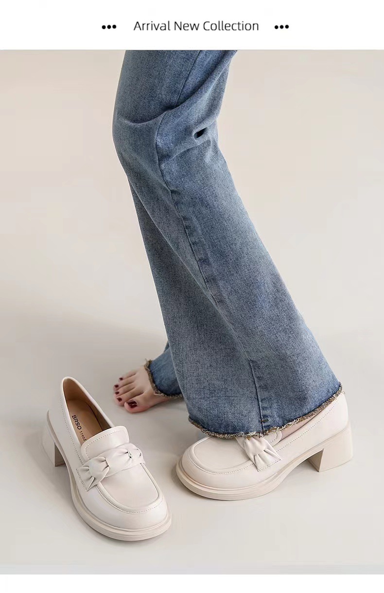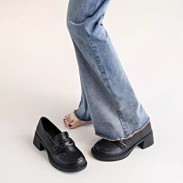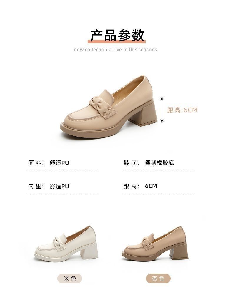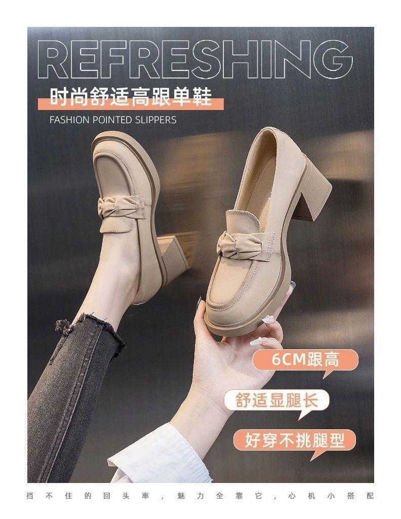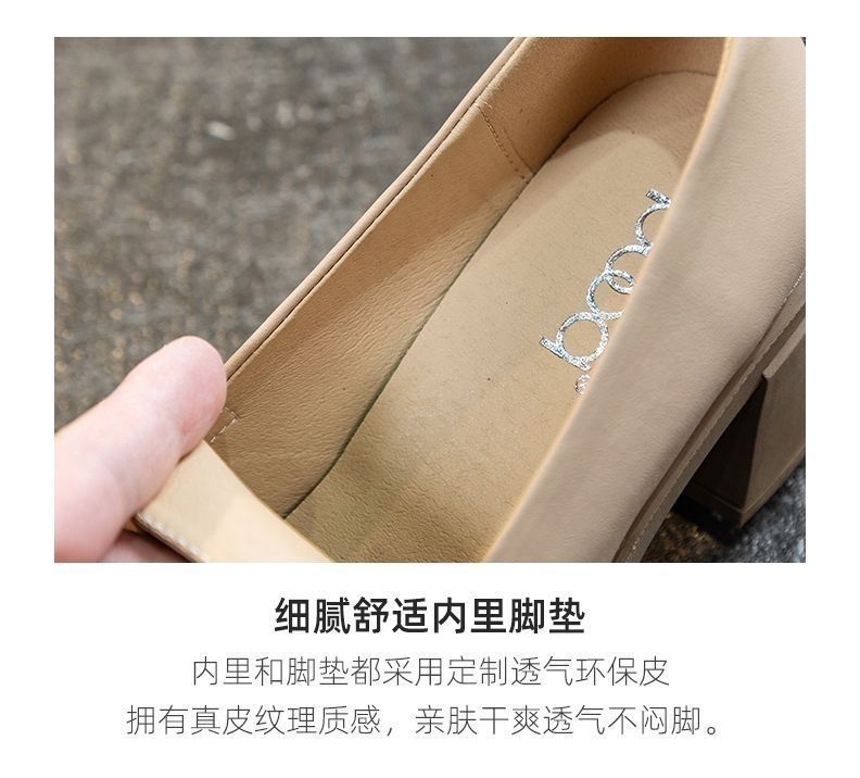 정품 가죽 영국 스타일 작은 가죽 신발 여성용 부드러운 가죽 봄과 가을 새로운 유행 청키 힐 슬립온 봄과 가을 빈티지 싱글 레이어 신발스토어 가기