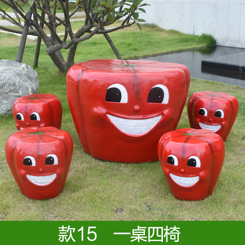 야외 FRP 시뮬레이션 축구 테이블 및 의자 장식품 버섯 호박 테이블과 의자 조각 공원 숲 쇼핑몰 좌석 장식스토어 가기