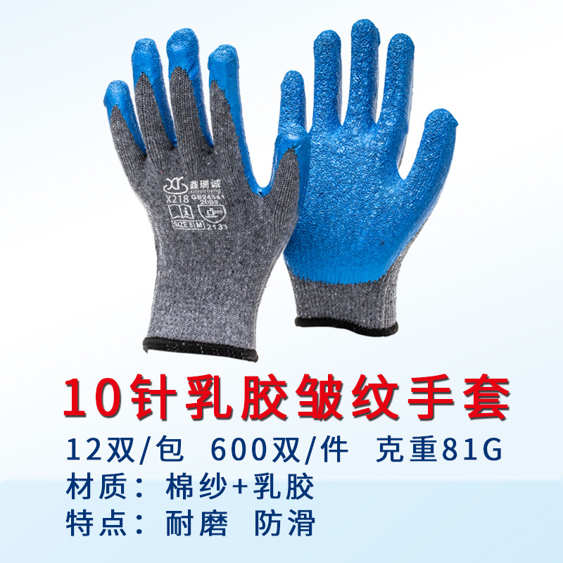 10핀 면사 주름 라텍스 장갑, 두꺼운 고무 코팅, 노동 보호, 내마모성, 미끄럼 방지, 보호, 공장 도매, 미끄럼 방지, 내마모성스토어 가기