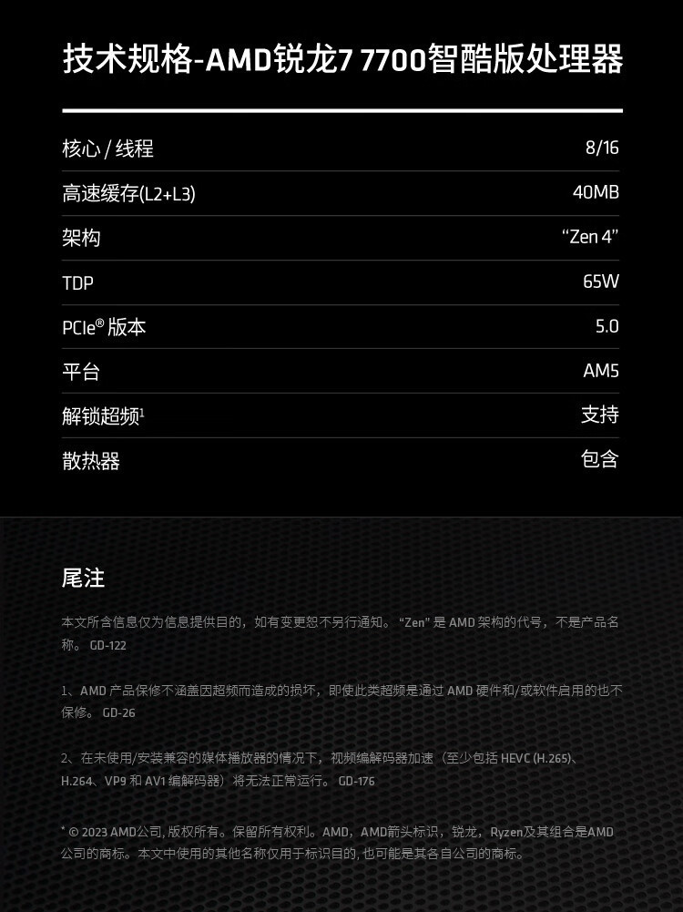 AMD 7000 시리즈 Ruilong R7 7700 프로세서 CPU AM5 인터페이스 박스/예비 부품
