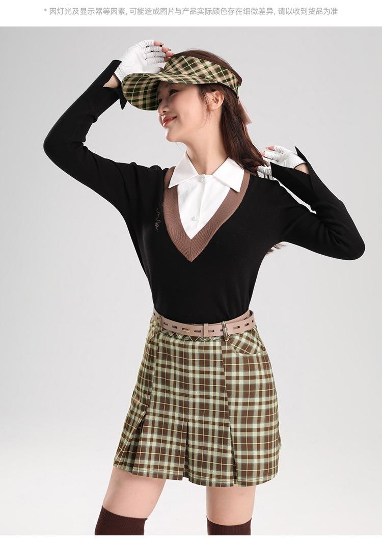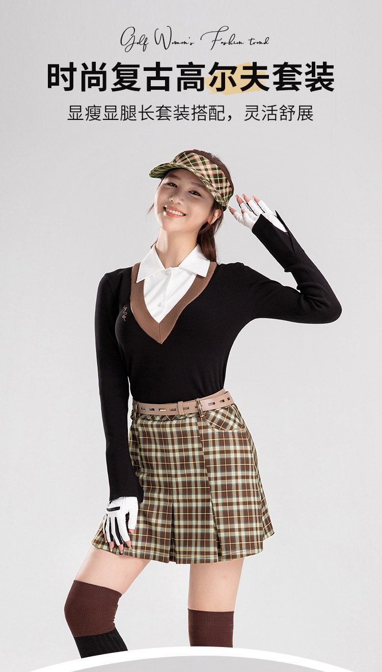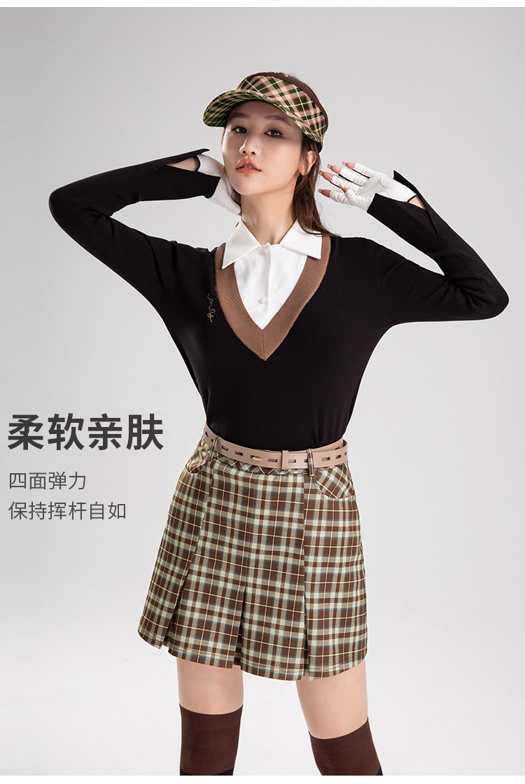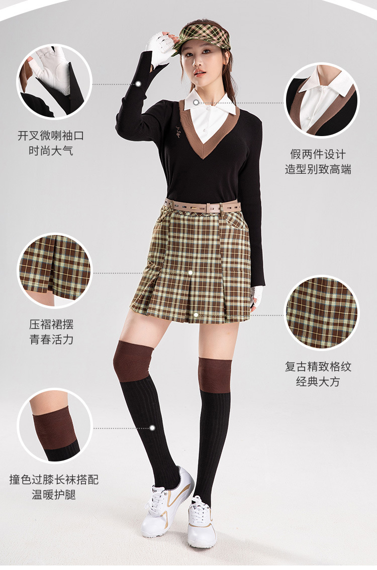 MY 골프 의류 여성의 가을과 겨울 새로운 유행 우아한 슬림 핏 가짜 투피스 스웨터 코트 오버 스커트 볼 옷 세트스토어 가기