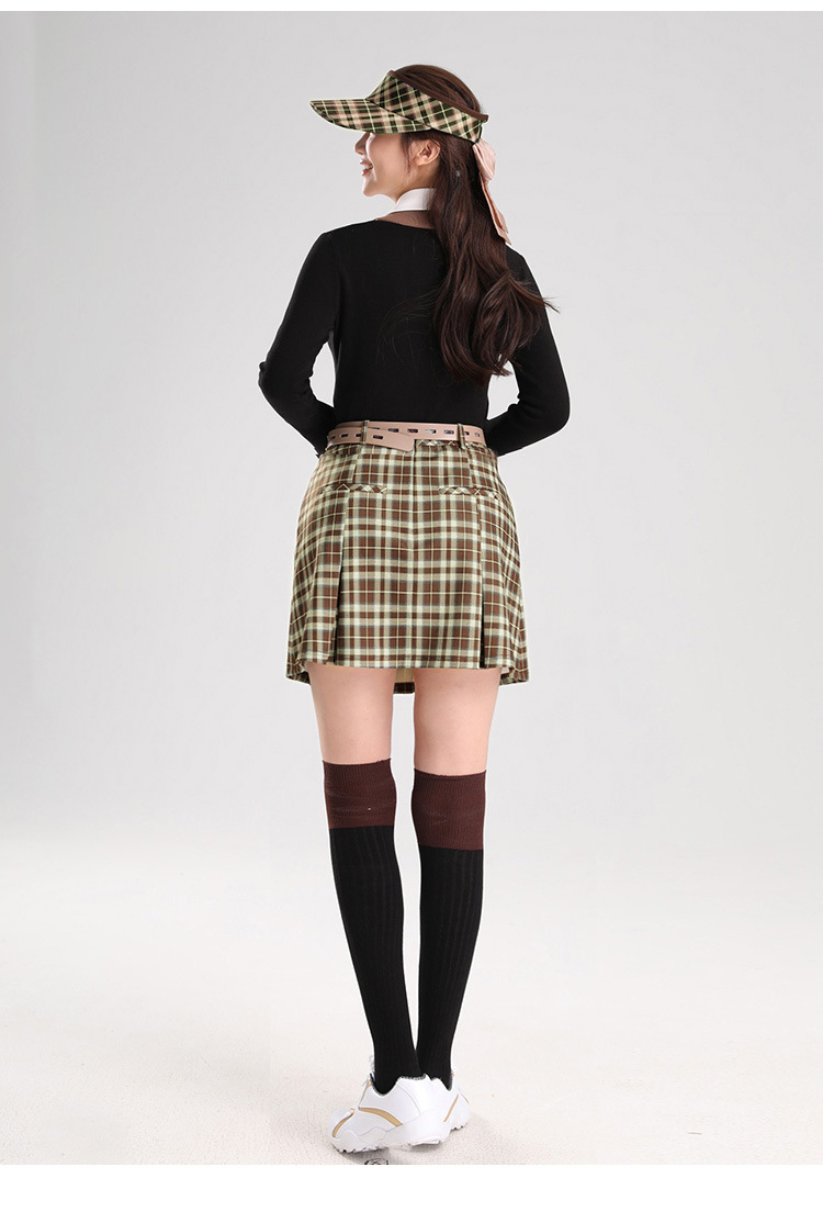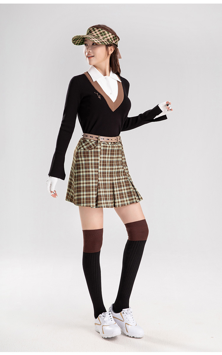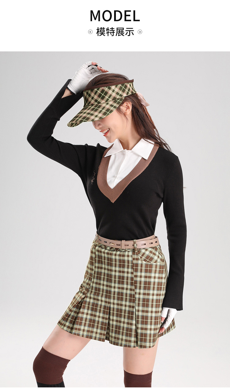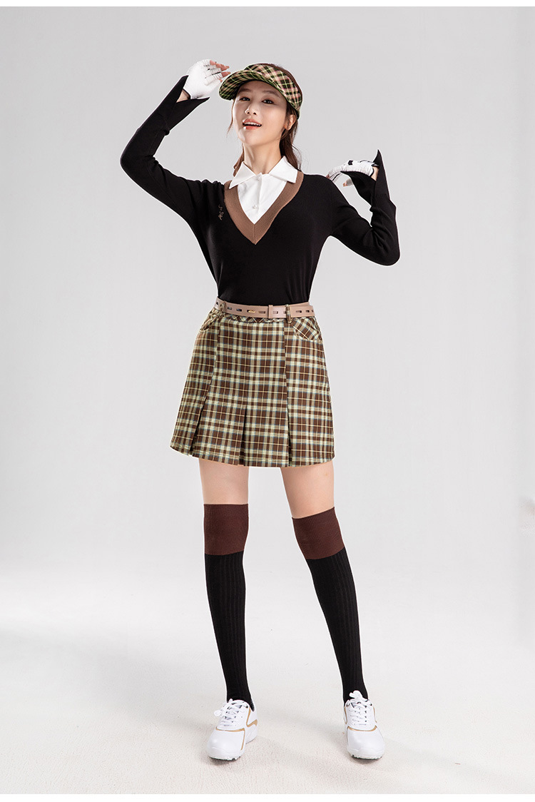 MY 골프 의류 여성의 가을과 겨울 새로운 유행 우아한 슬림 핏 가짜 투피스 스웨터 코트 오버 스커트 볼 옷 세트스토어 가기