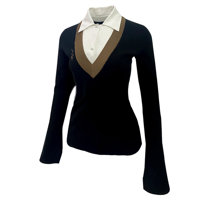 MY 골프 의류 여성의 가을과 겨울 새로운 유행 우아한 슬림 핏 가짜 투피스 스웨터 코트 오버 스커트 볼 옷 세트