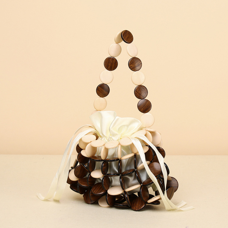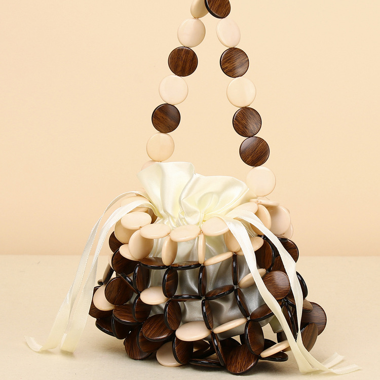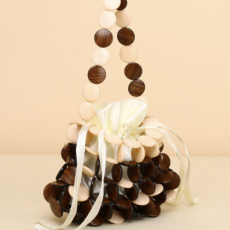 새로운 스타일 심플 스타일 체스 조각 짠 나무 칩 핸드백 휴대 전화 가방 DIY 수제 페르시 짠 핸드백스토어 가기