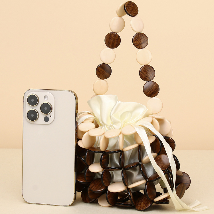 새로운 스타일 심플 스타일 체스 조각 짠 나무 칩 핸드백 휴대 전화 가방 DIY 수제 페르시 짠 핸드백