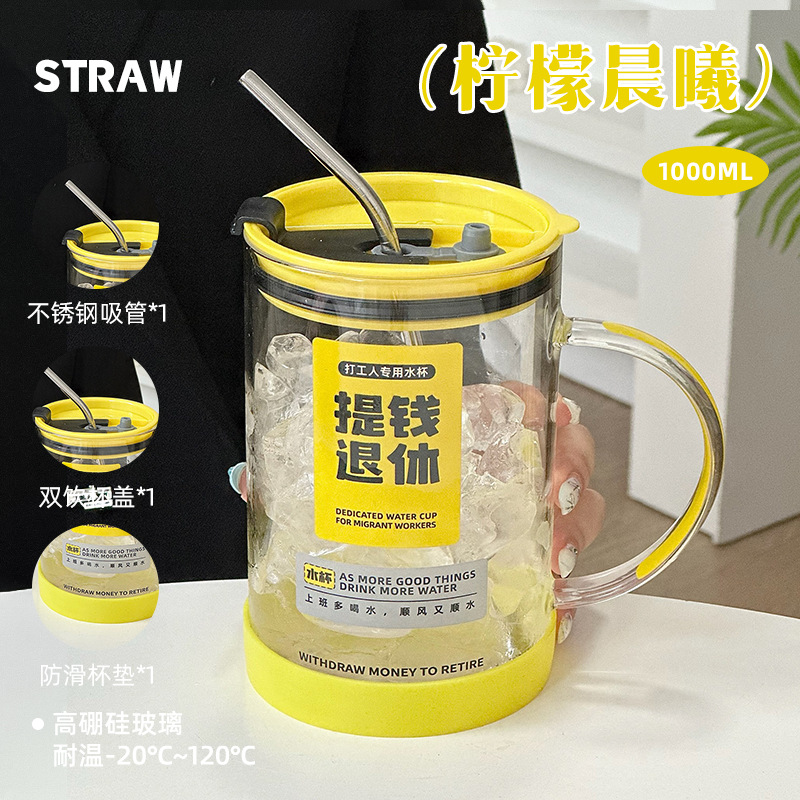 • 옥수수황색 퇴직금 1000ml + 뚜껑 + 실리콘 바닥 + 스테인리스 빨대