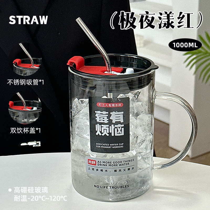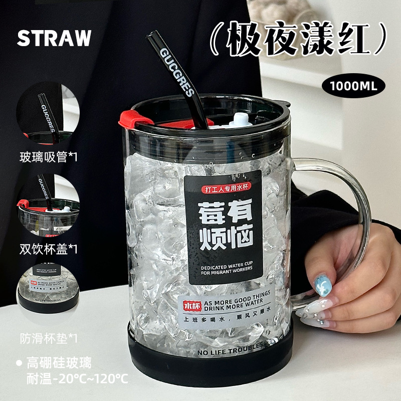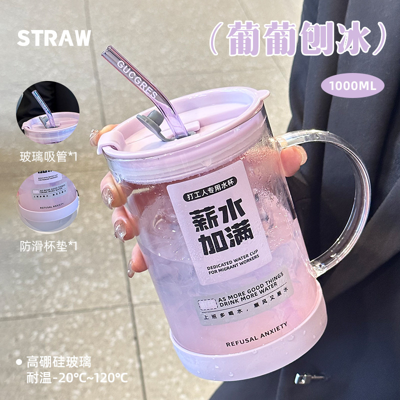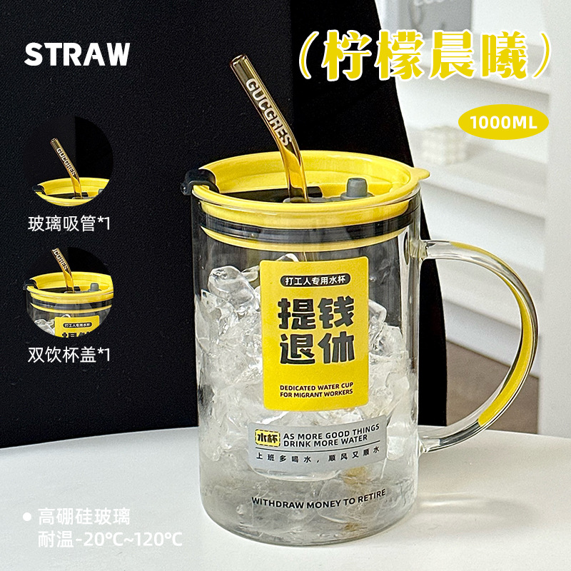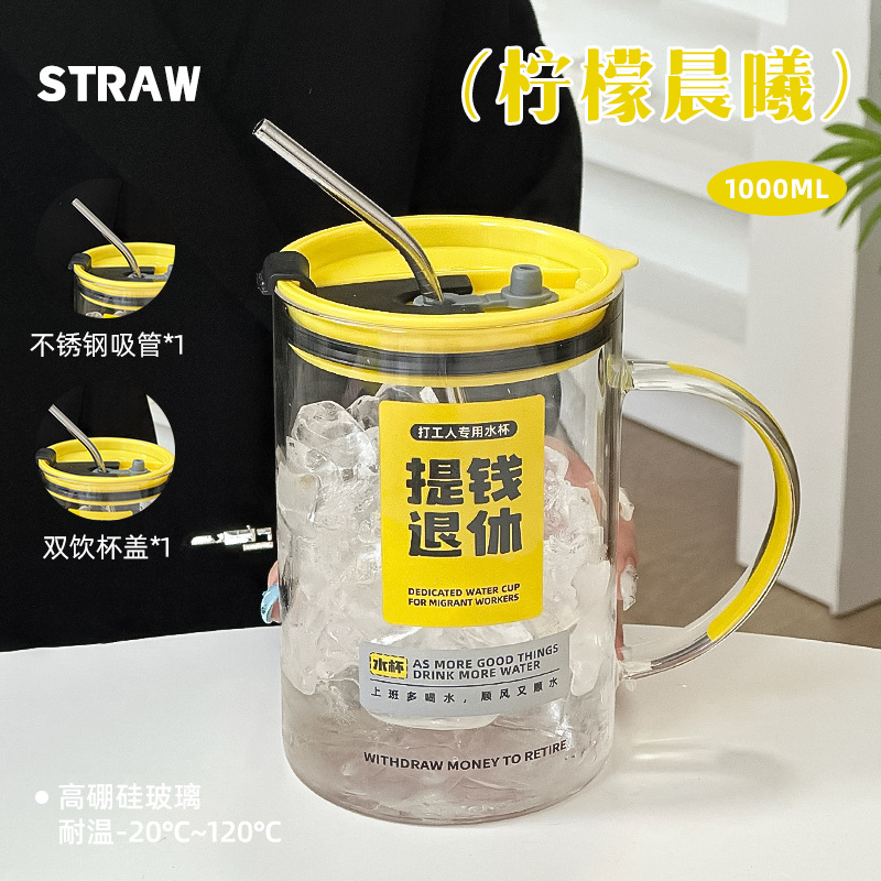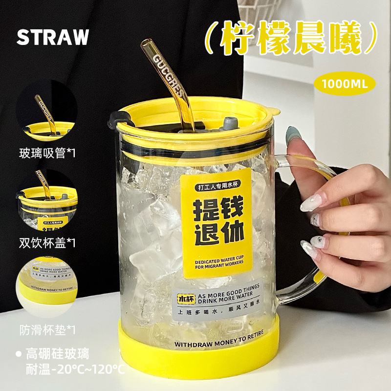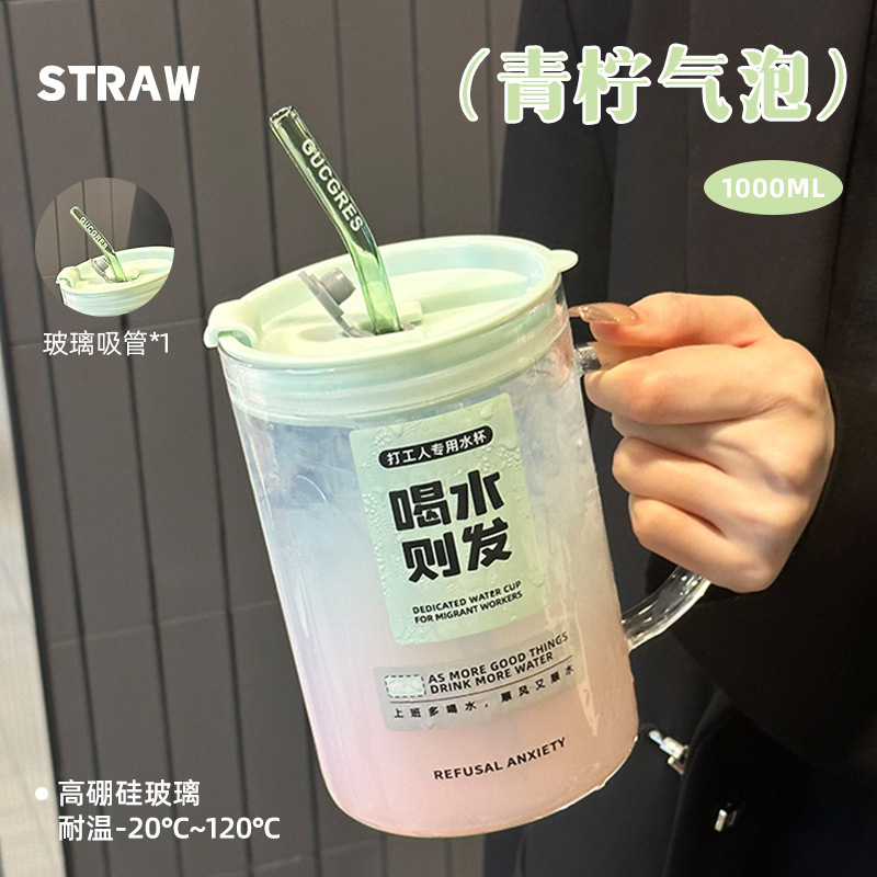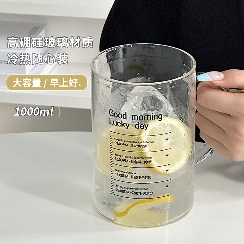 로고가 인쇄된 선물 물컵, 빨대컵, 심플한 대용량 머그컵, 고온 방지 고붕규산 유리컵 세트스토어 가기