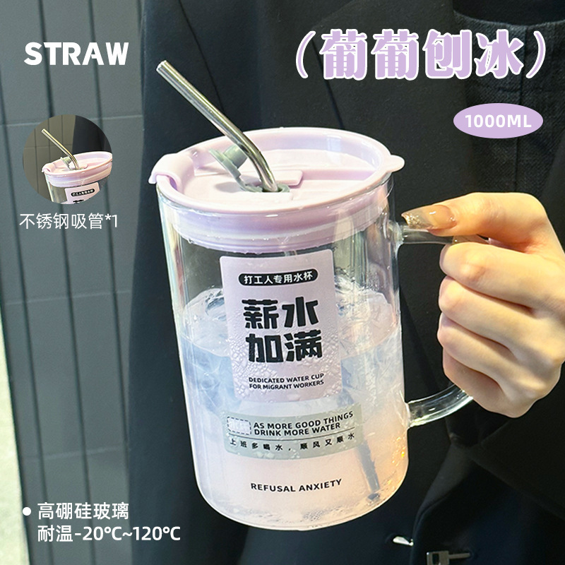 • 포도 보라색 급수 + 뚜껑 + 스테인리스 빨대