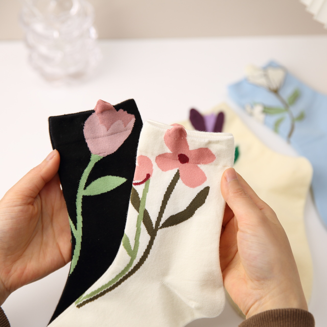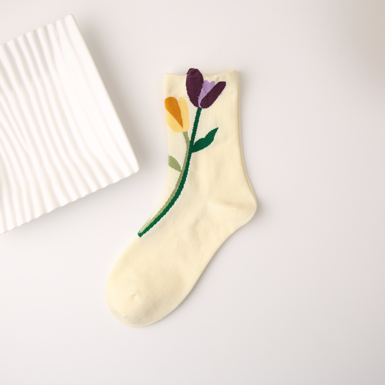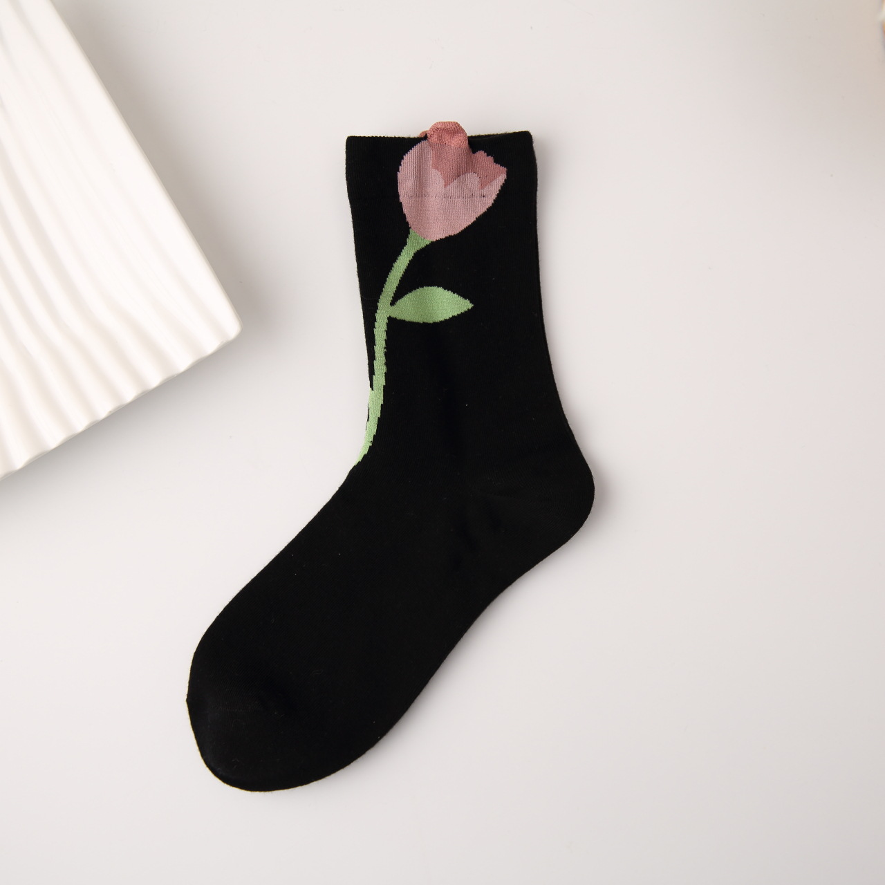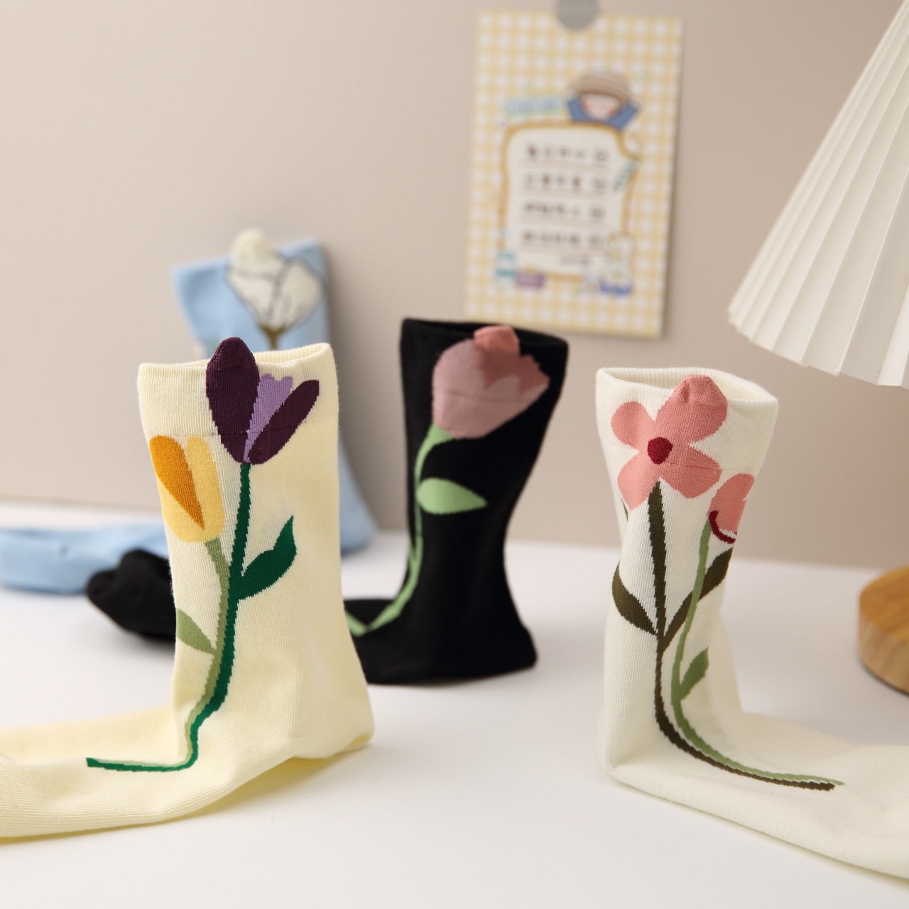 오리지널 디자이너 양말 여성용 양말 심플 인 트렌디 한 중간 길이 양말 스테레오 튤립 꽃 면 양말스토어 가기
