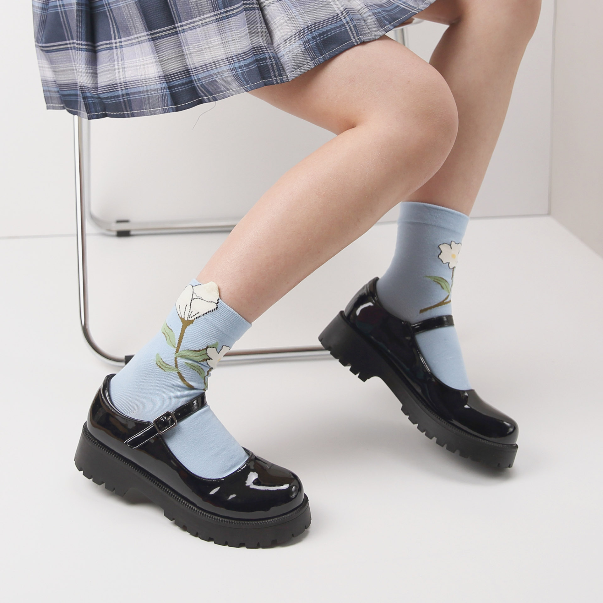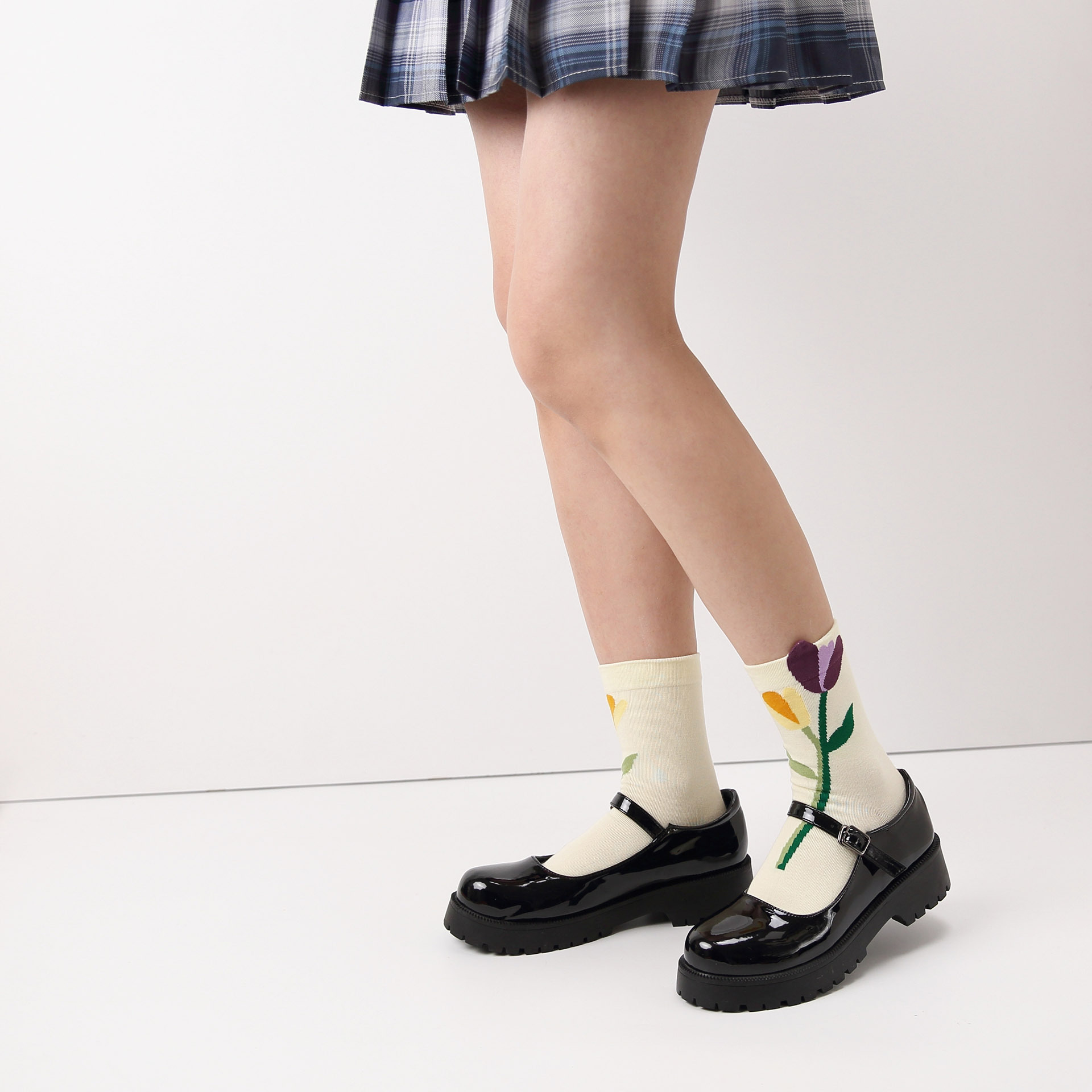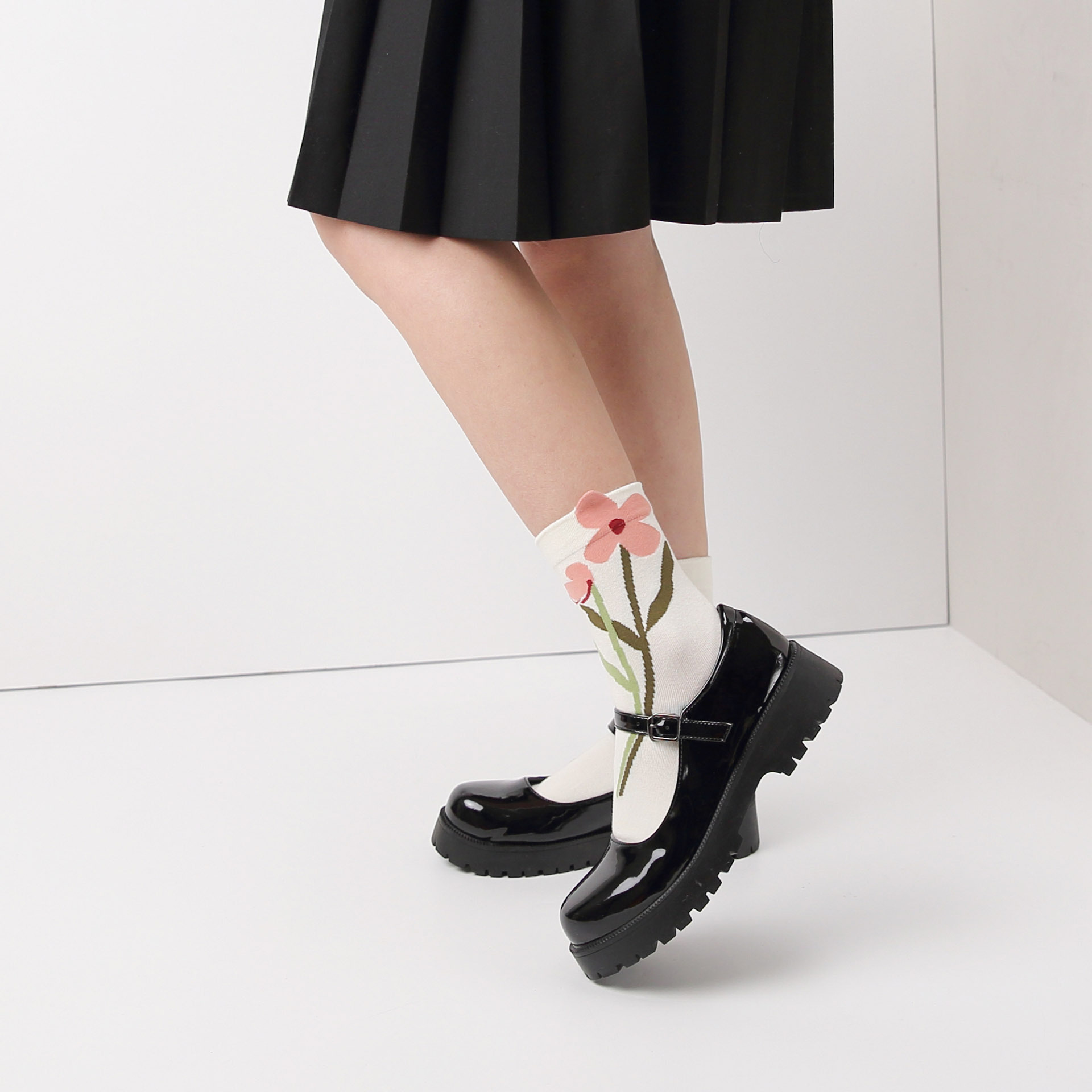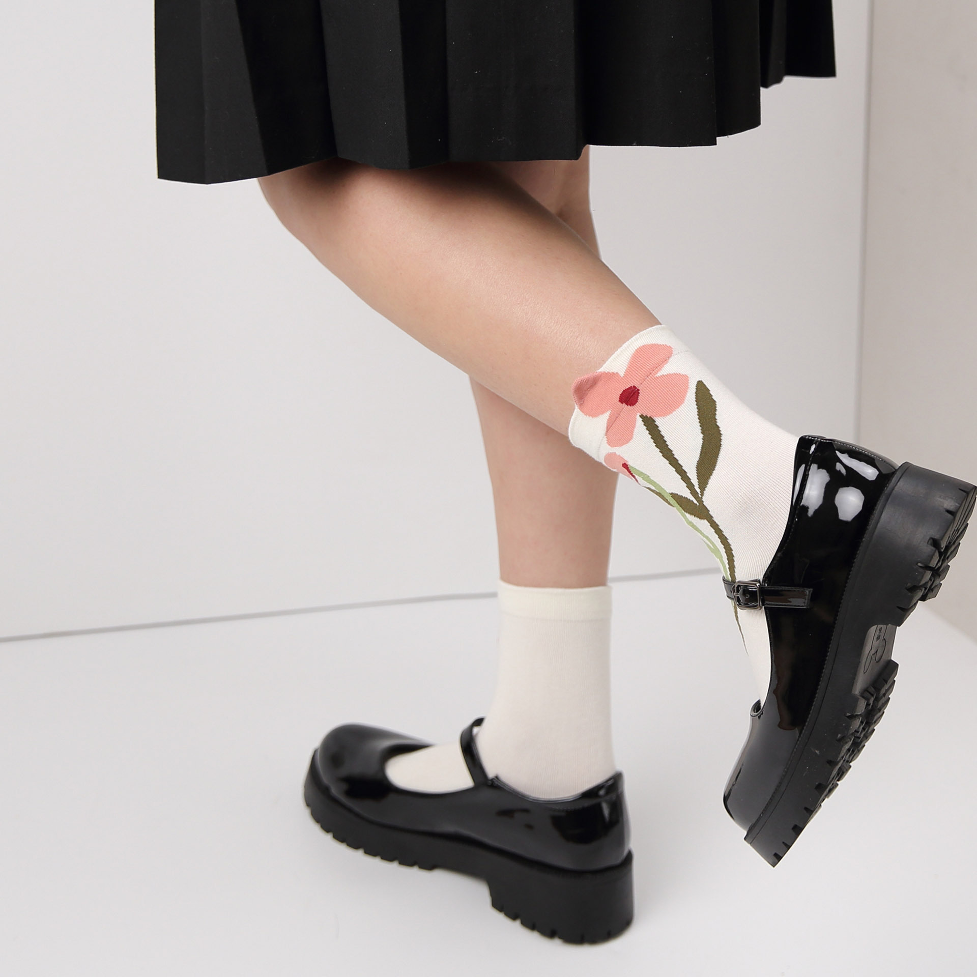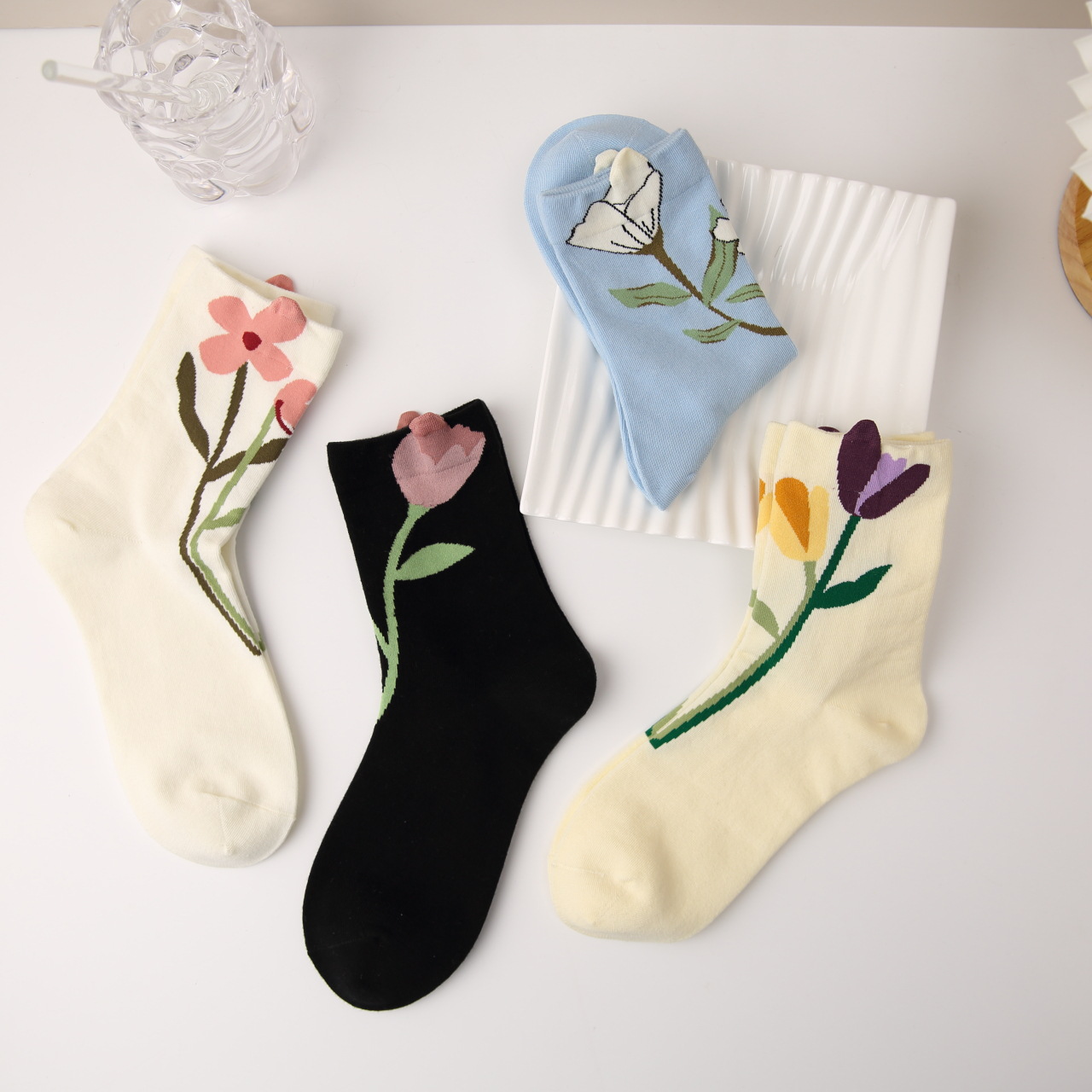 오리지널 디자이너 양말 여성용 양말 심플 인 트렌디 한 중간 길이 양말 스테레오 튤립 꽃 면 양말스토어 가기