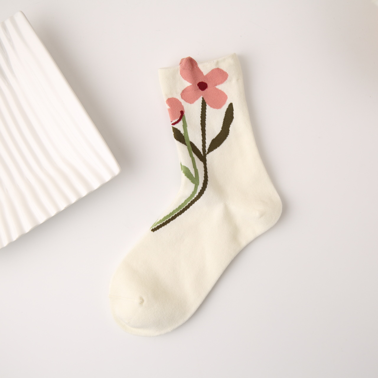 오리지널 디자이너 양말 여성용 양말 심플 인 트렌디 한 중간 길이 양말 스테레오 튤립 꽃 면 양말