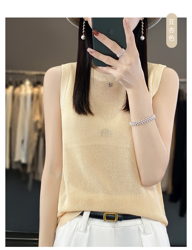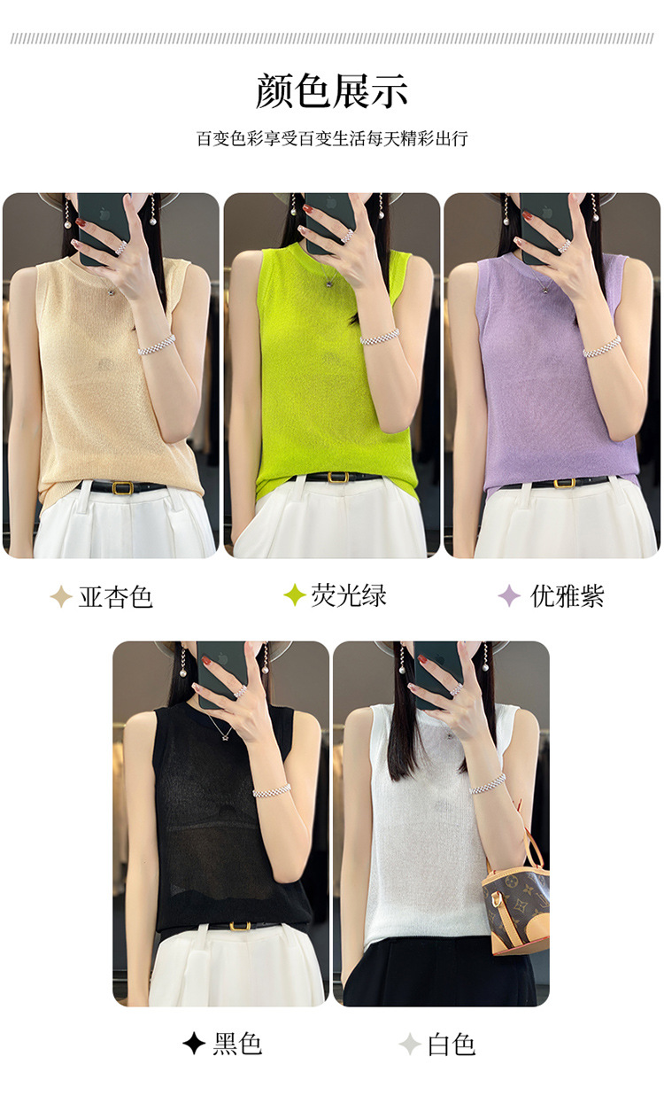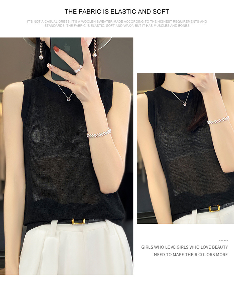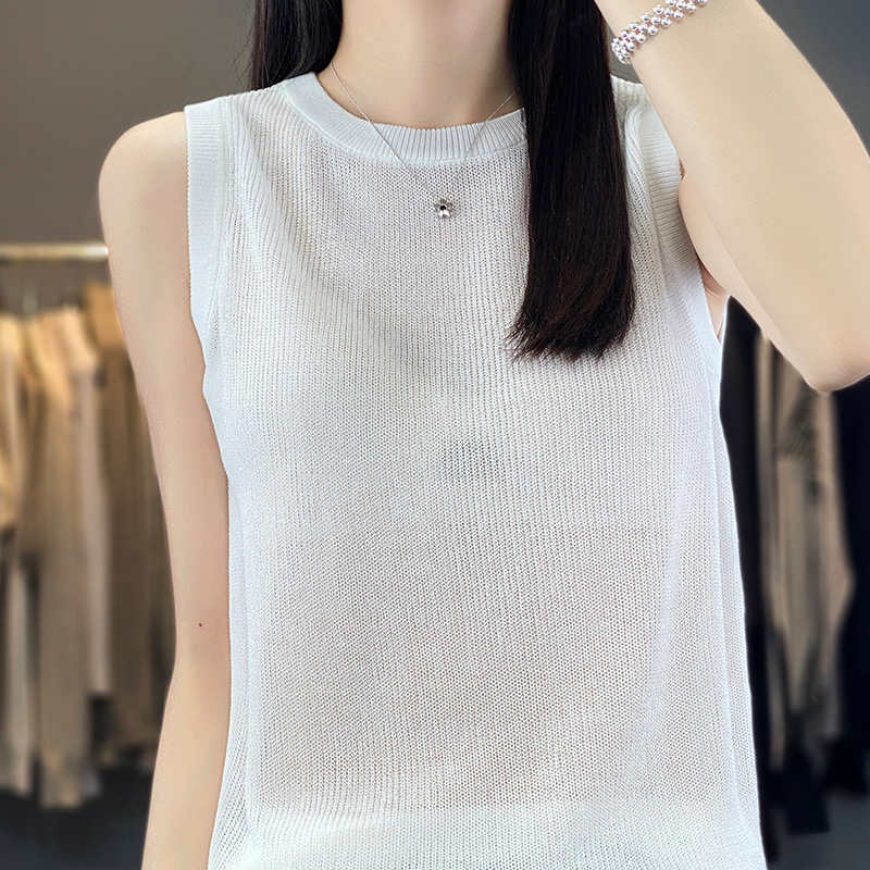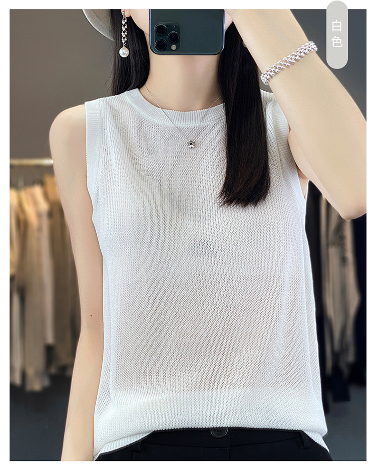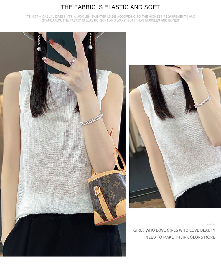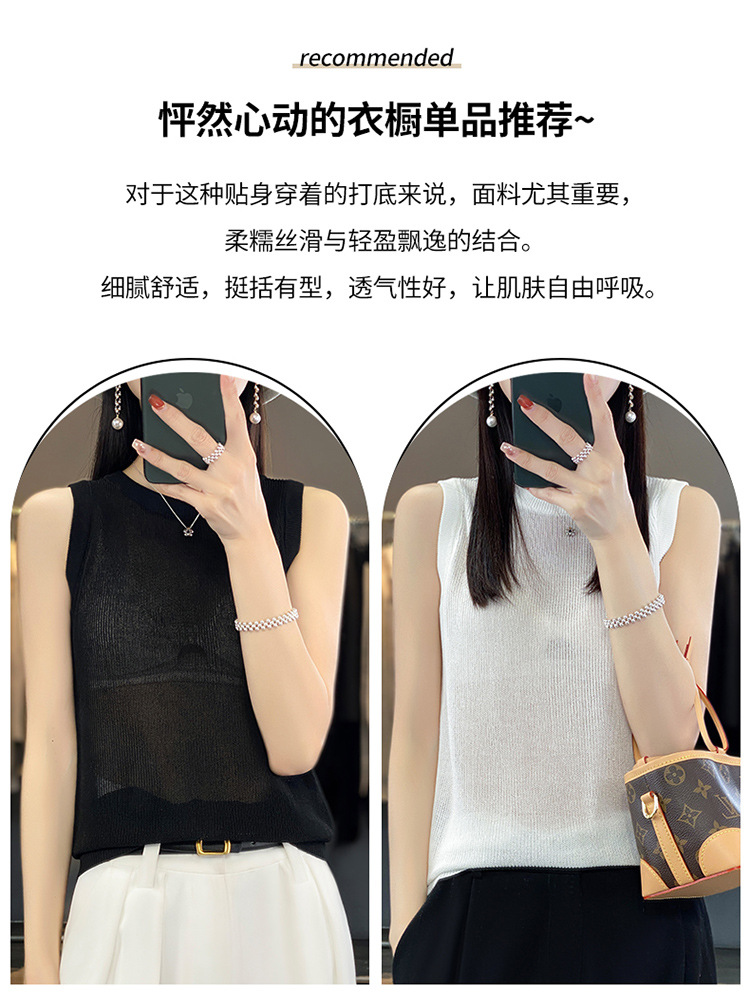 화이트 크루넥 조끼 여성용 봄과 여름 하의 유행 2023 커버 유방 슬림핏 슬리밍 민소매 아이스 실크 탑스토어 가기