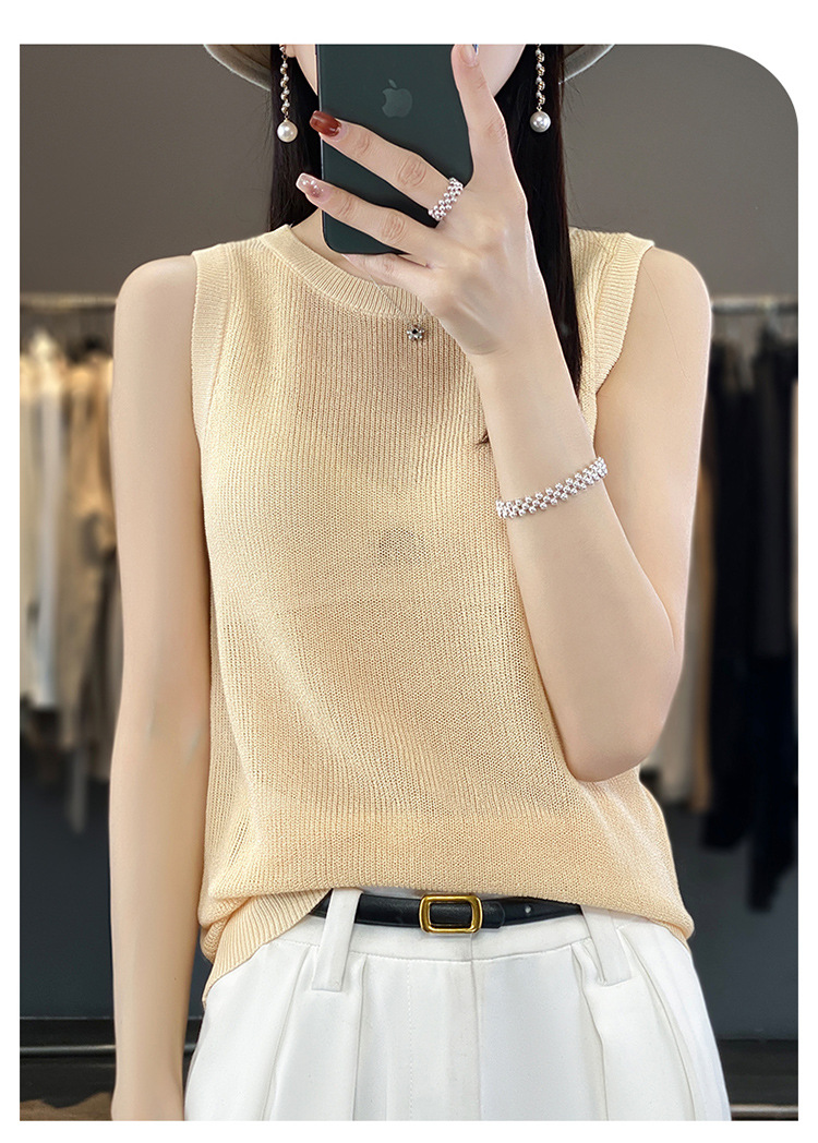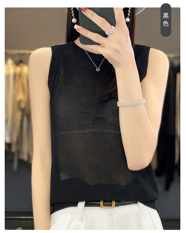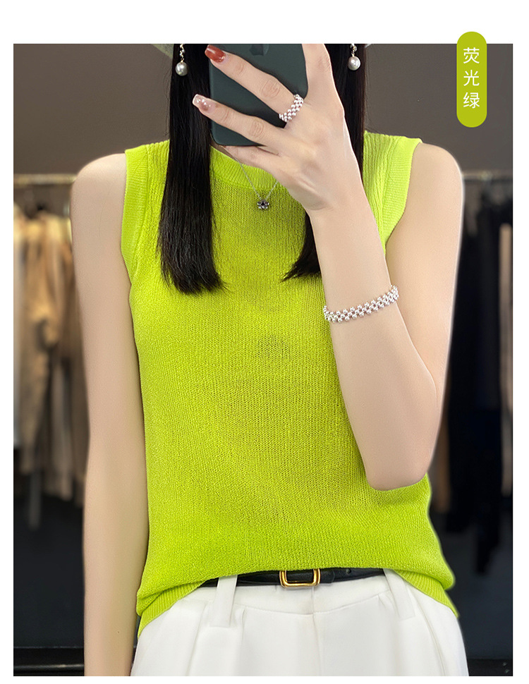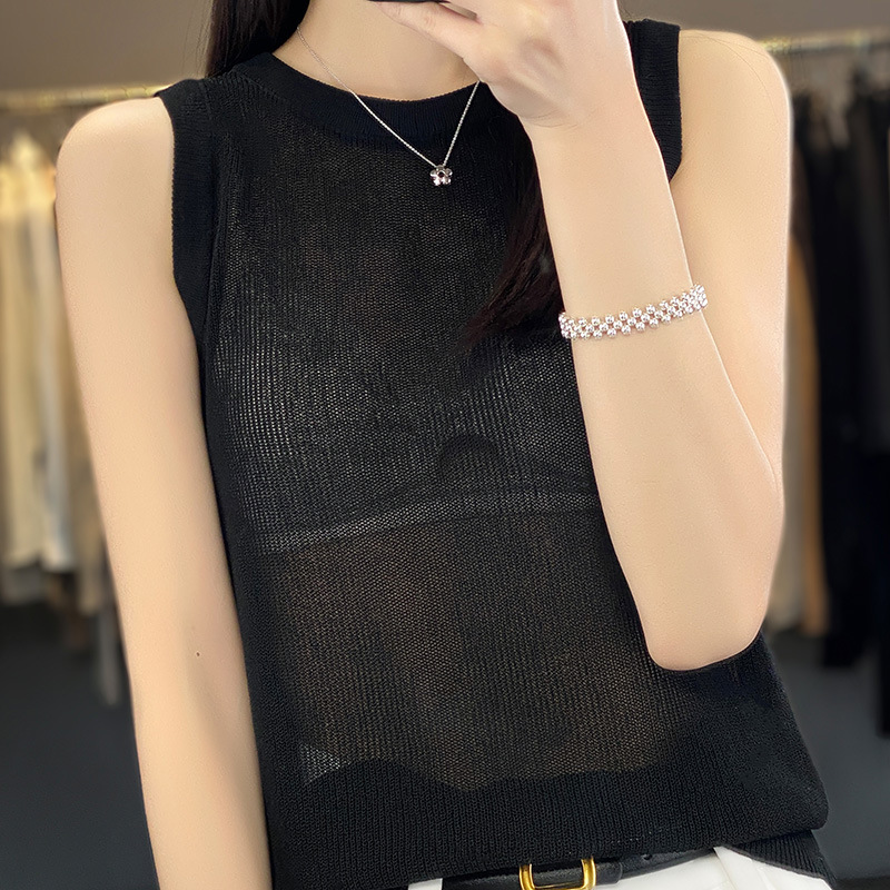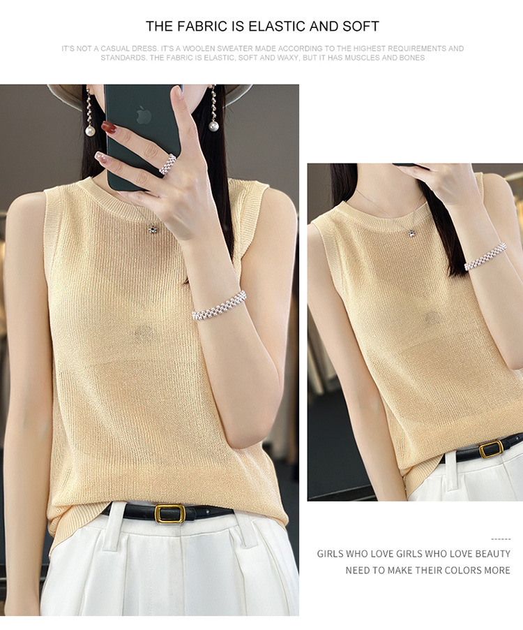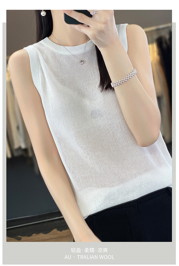 화이트 크루넥 조끼 여성용 봄과 여름 하의 유행 2023 커버 유방 슬림핏 슬리밍 민소매 아이스 실크 탑스토어 가기