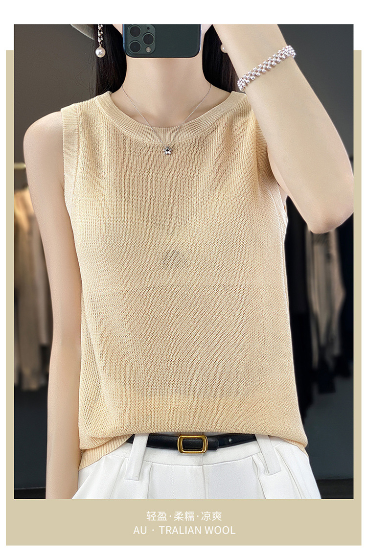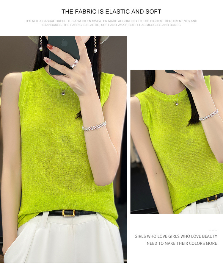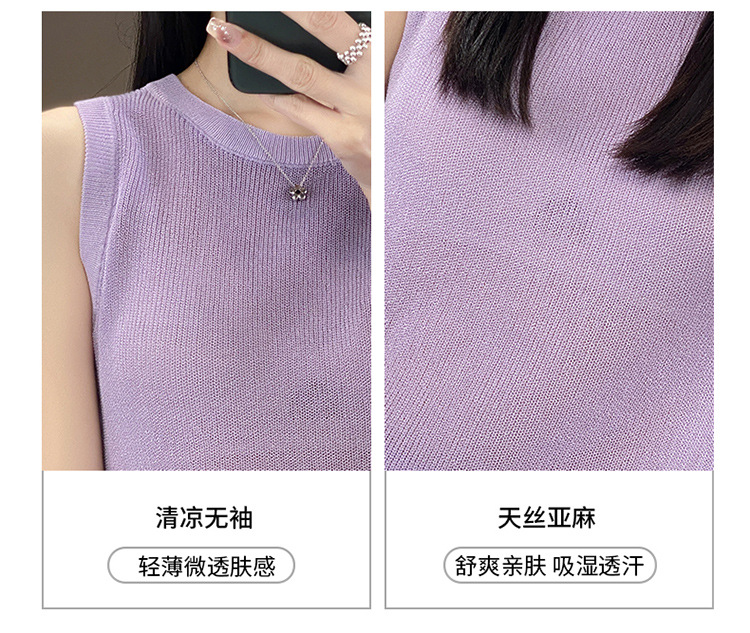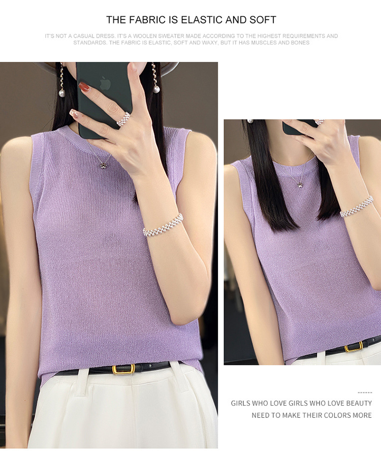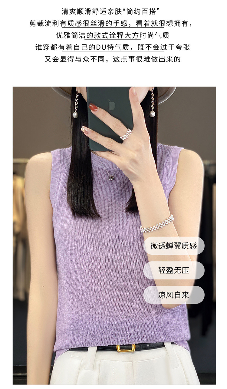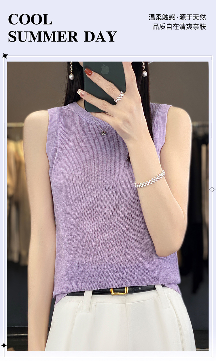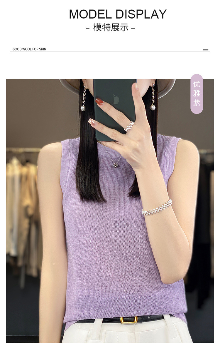 화이트 크루넥 조끼 여성용 봄과 여름 하의 유행 2023 커버 유방 슬림핏 슬리밍 민소매 아이스 실크 탑스토어 가기