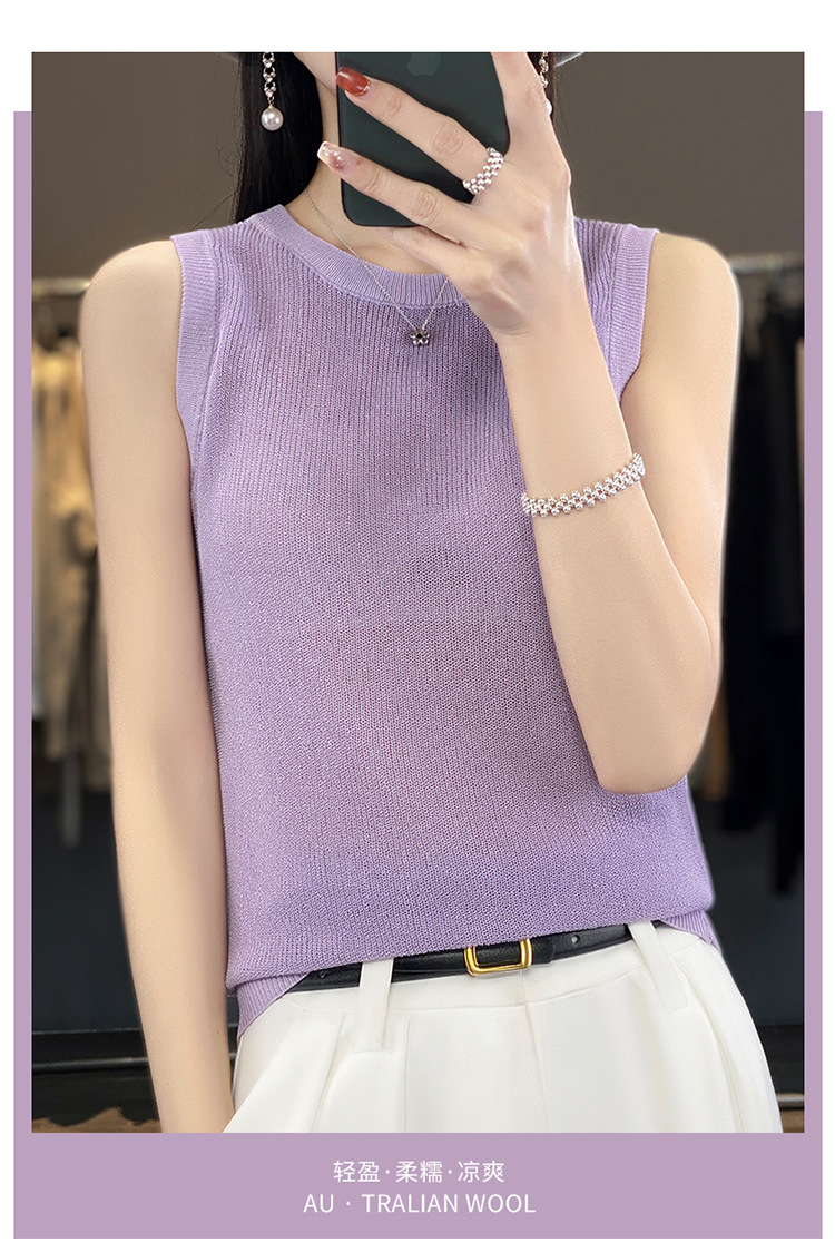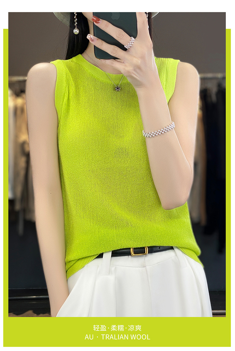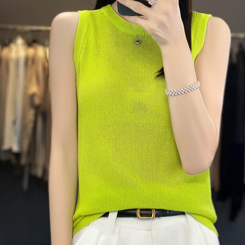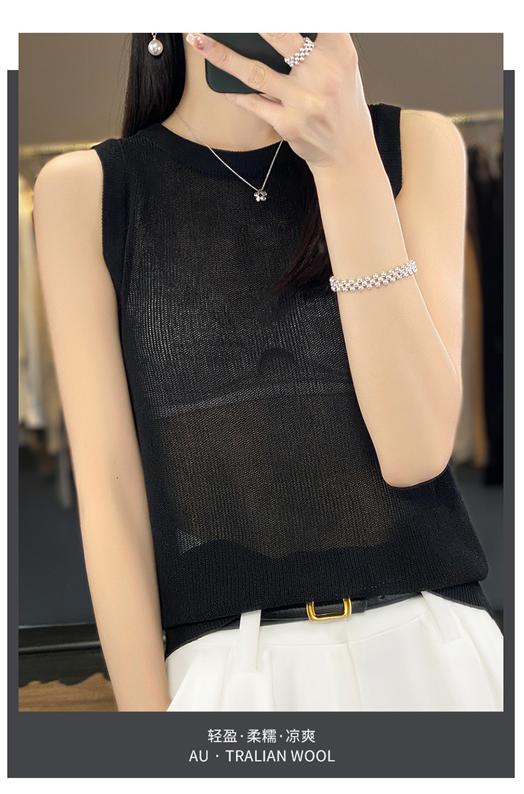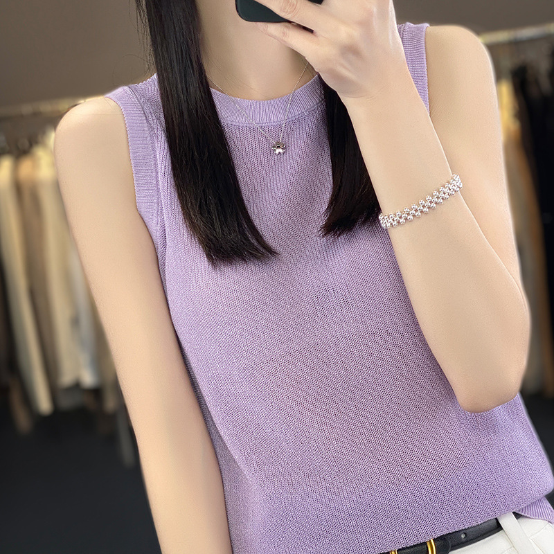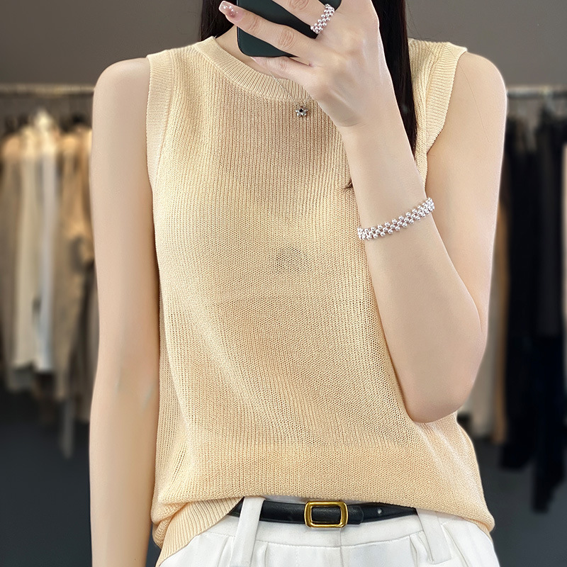 화이트 크루넥 조끼 여성용 봄과 여름 하의 유행 2023 커버 유방 슬림핏 슬리밍 민소매 아이스 실크 탑스토어 가기