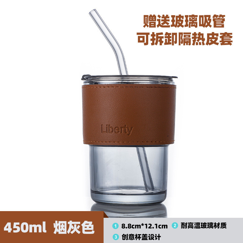 인스 스타일 오로라 대나무 컵 내열 유리 빨대컵 휴대용 커피컵 방열 이중 음료컵 우유컵 물컵스토어 가기