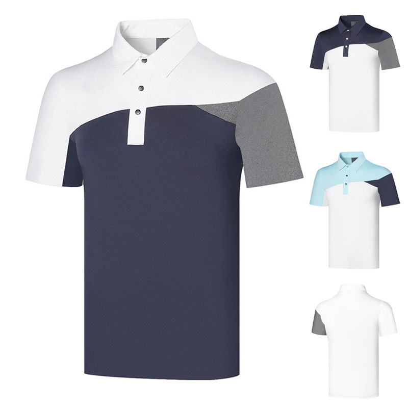 크로스보더 핫셀링 골프 저지 남성용 속건 통기성 느슨한 반팔 티셔츠 비즈니스 대비 색상 수분 흡수 폴로 셔츠