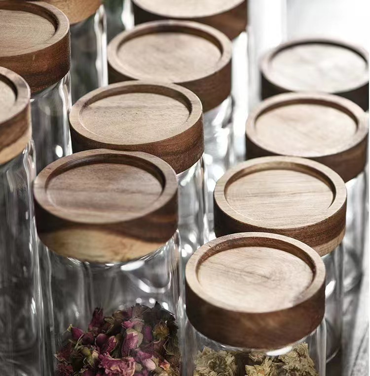 아카시아 나무 뚜껑 유리 봉인 항아리 나무 뚜껑 주방 저장 항아리 실리콘 나무 뚜껑 세라믹 컵 대나무 뚜껑