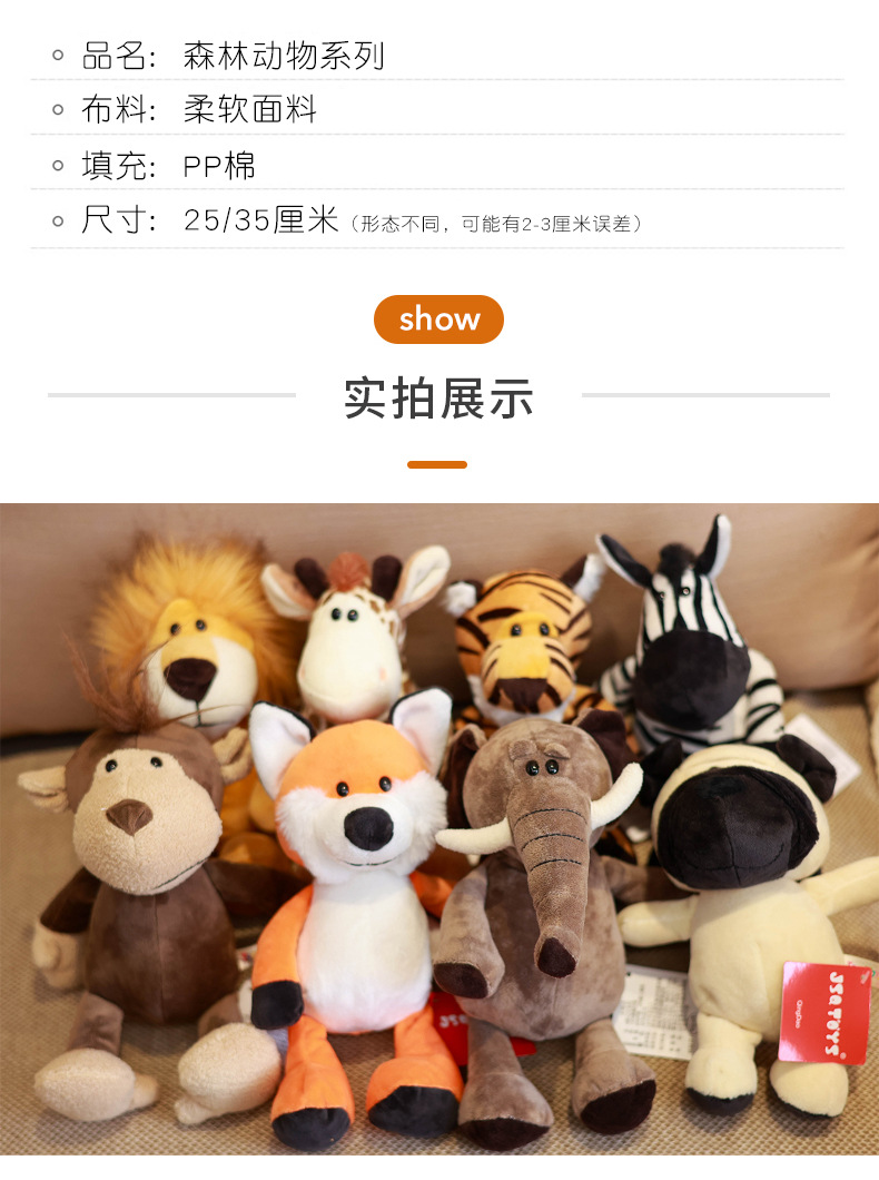 숲 동물 호랑이 인형 사자 코끼리 원숭이 기린 라이브 정글 인형 봉제 장난감 어린이 선물
