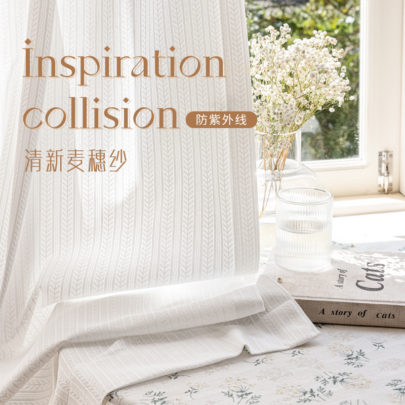 거즈 커튼 투명 및 불 투과성 거실 발코니 흰색 창 커튼 차양 차양 자외선 차단제 단열 일본식 거울 밀 거즈스토어 가기