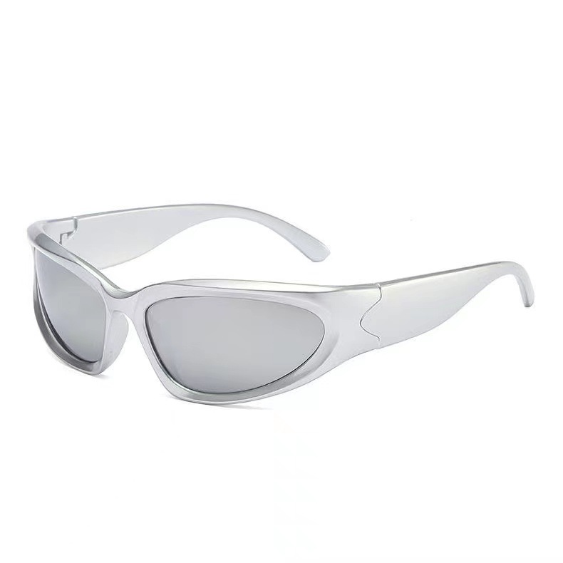 未来战士银光闪闪墨镜酷科技感赛博风格方形反光银框酒吧蹦迪眼镜
