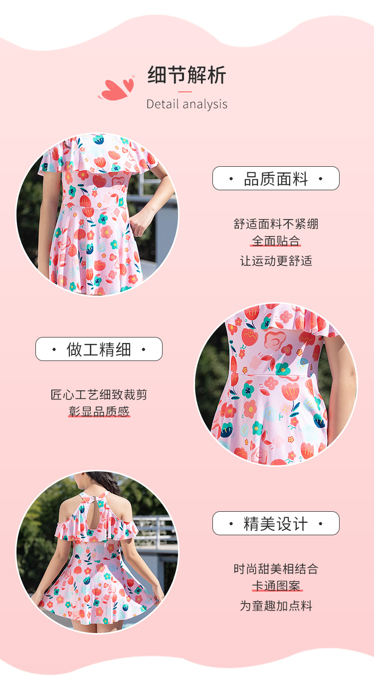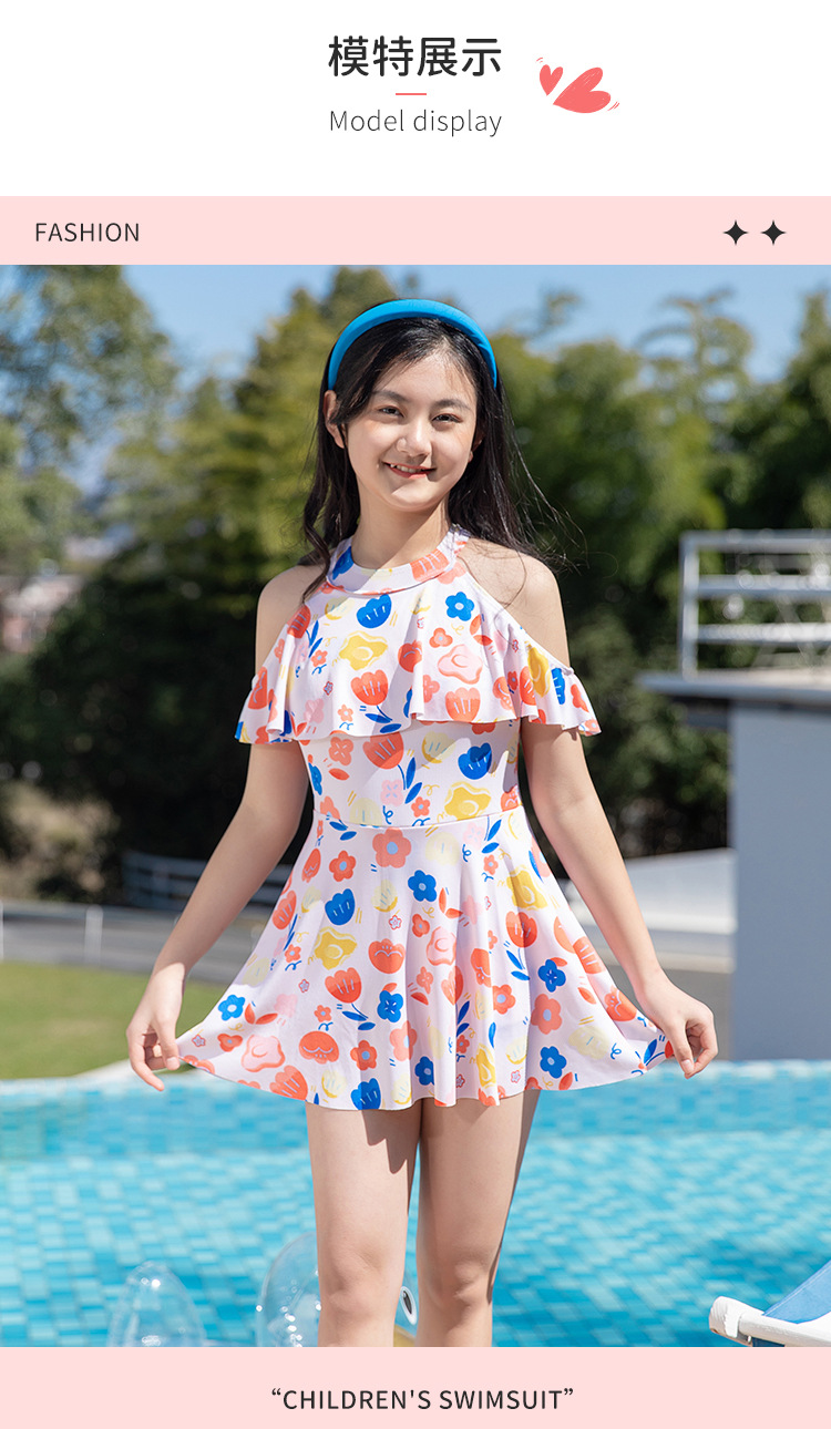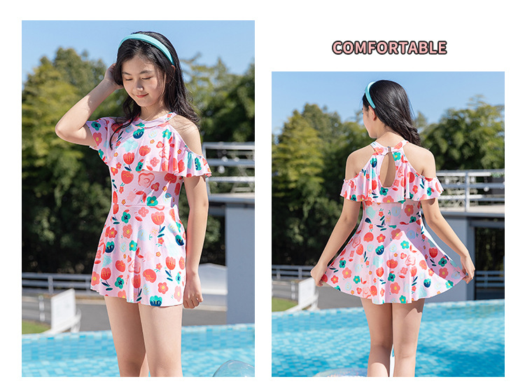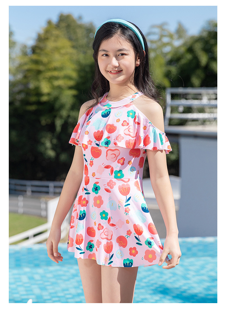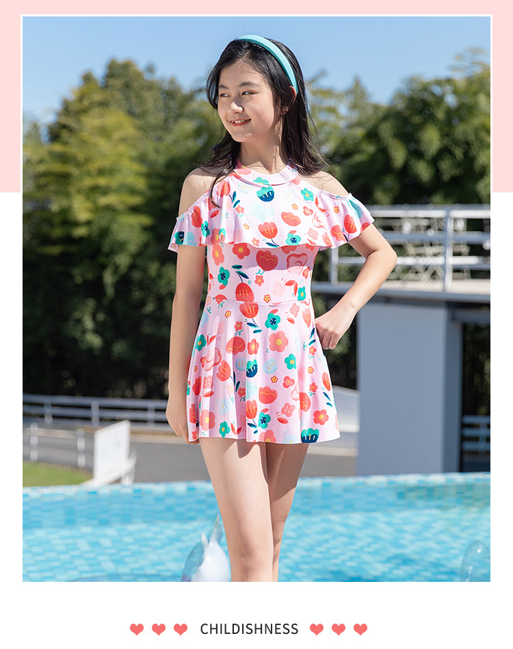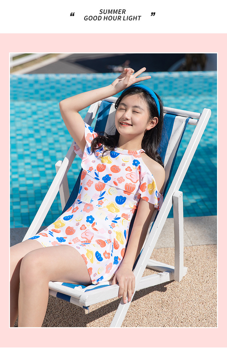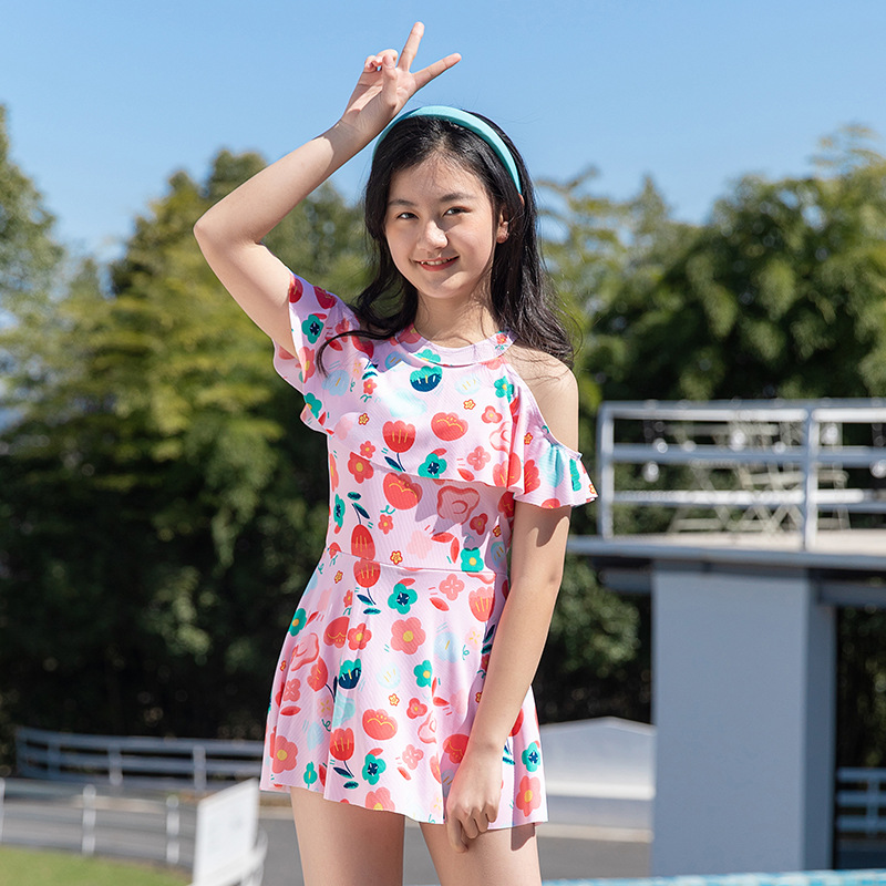 해변 휴가를위한 한국 스타일 소녀의 꽃 원피스 수영복 안티 라이트 수영복 귀여운 얇은 통기성 수영복