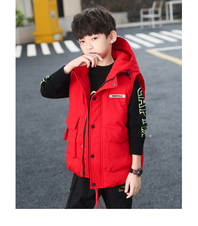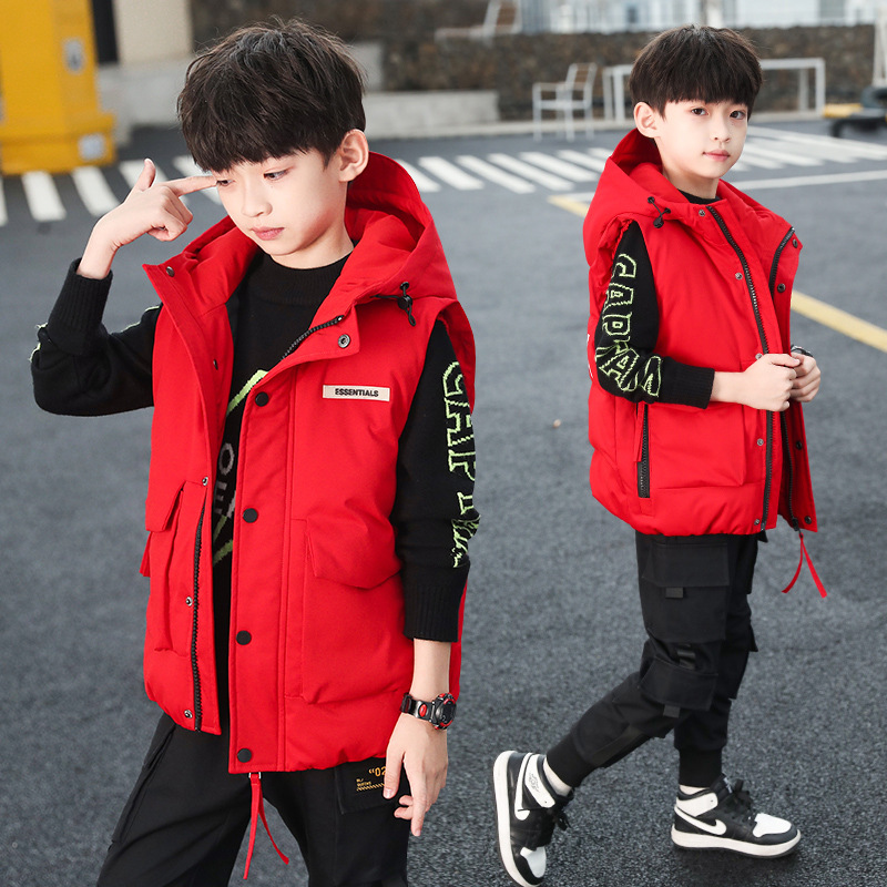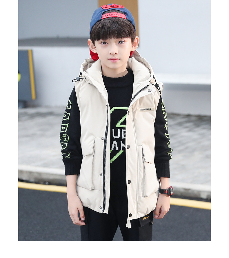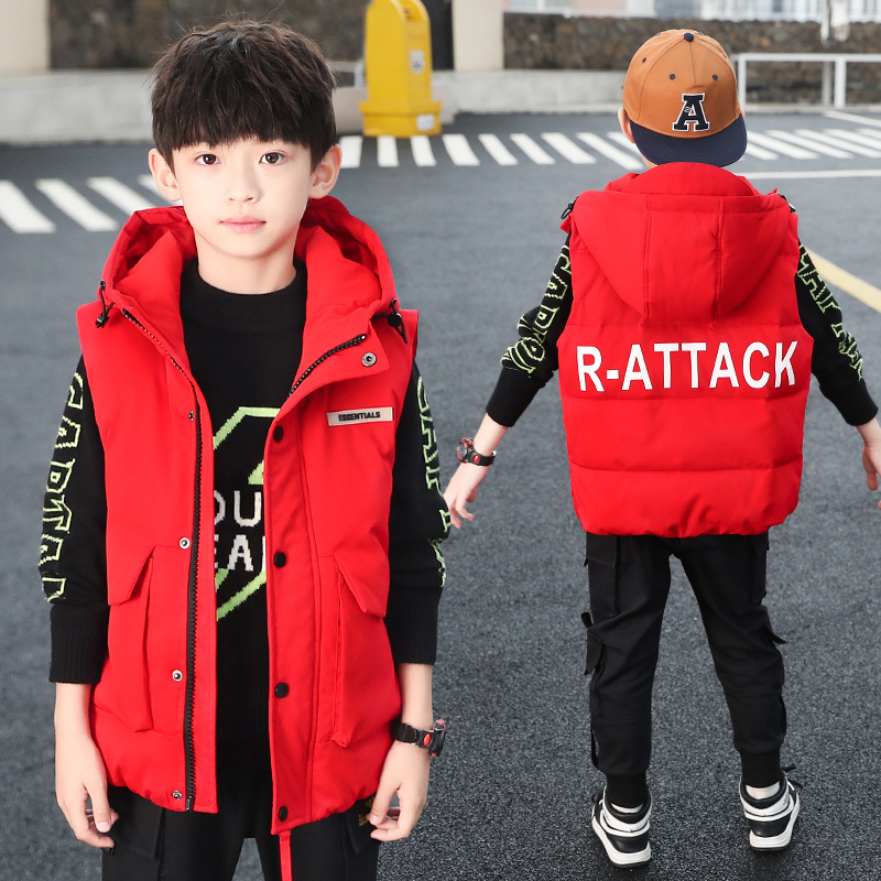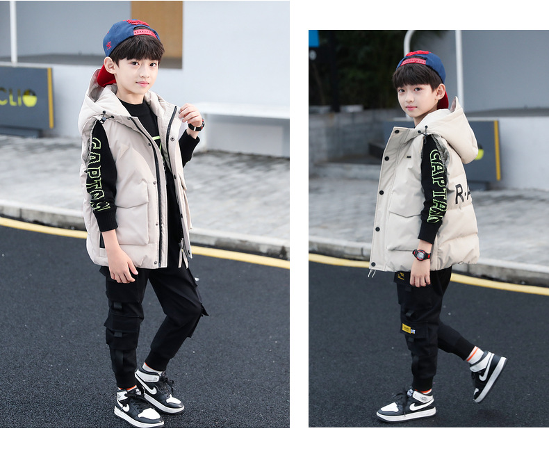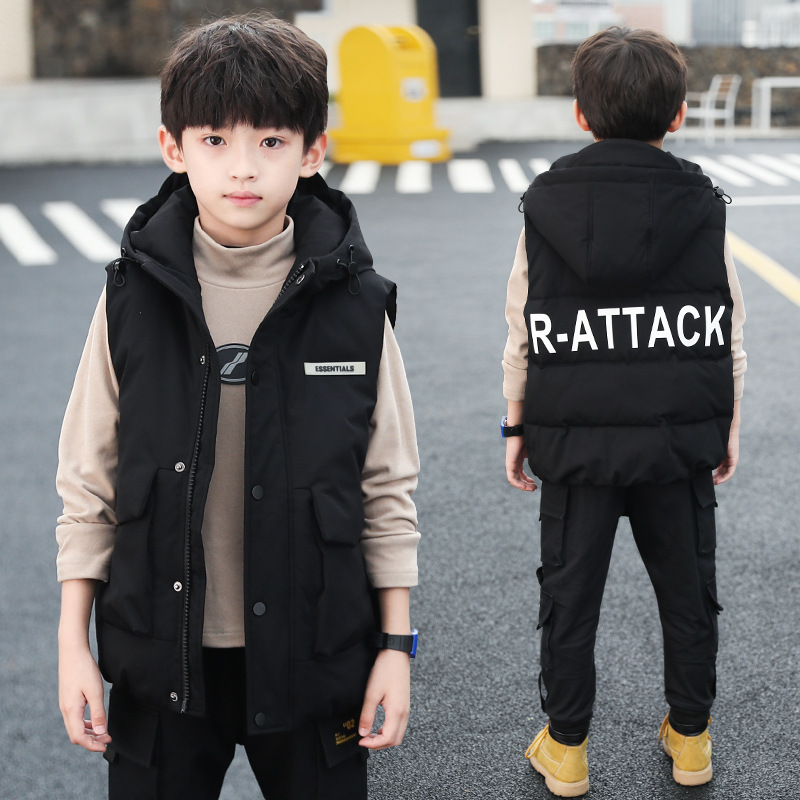 남아 조끼 재킷 코튼 패딩 재킷 따뜻한 편지 탑 착용 2023 겨울 새로운 스타일 웨스턴 스타일 면 두꺼운 조끼