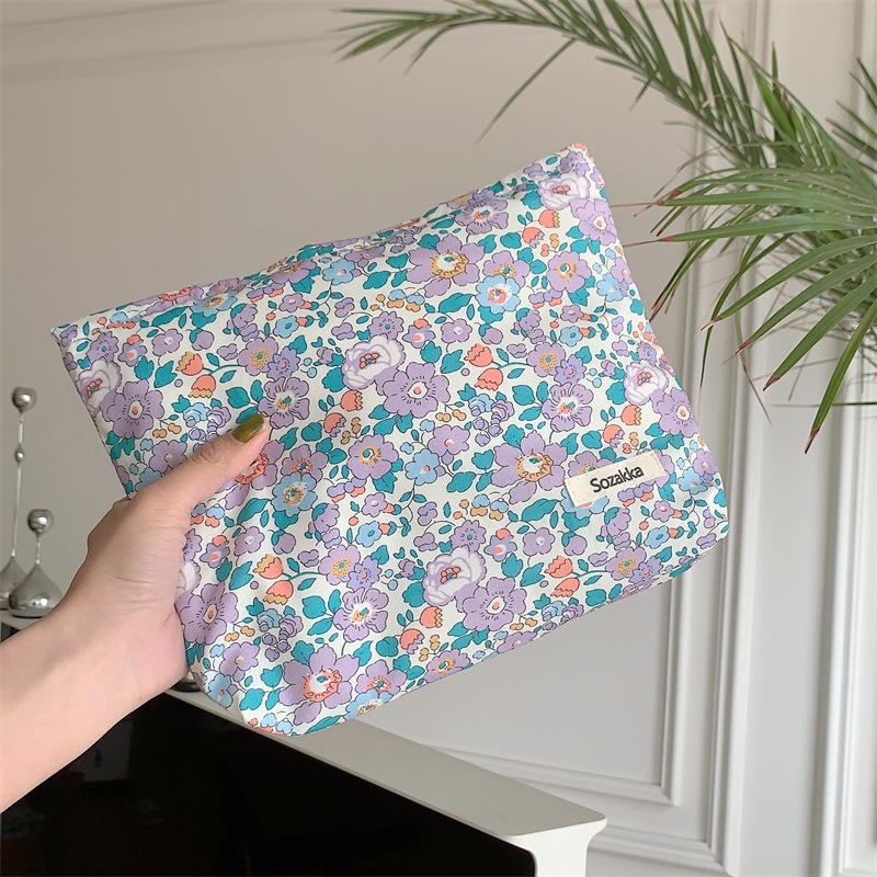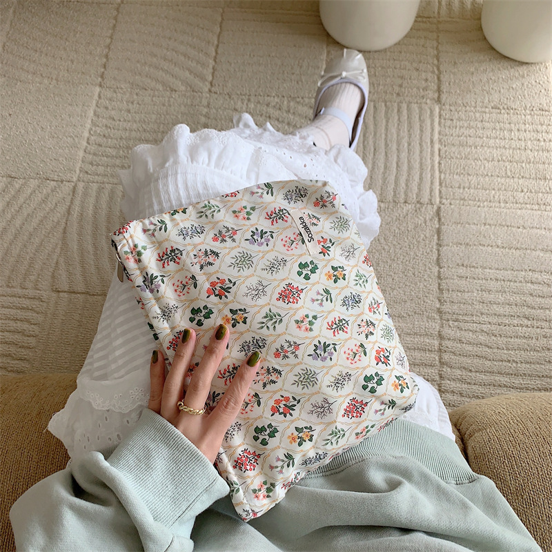 33261 신선한 꽃 면화 문학 화장품 가방 여성 클러치 백 휴대용 보관 가방 기타 립스틱 가방