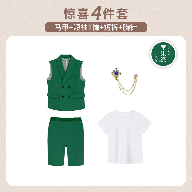 • 애플 그린 4 종 세트 (조끼 + 반바지 + 브로치 + 나비 넥타이)