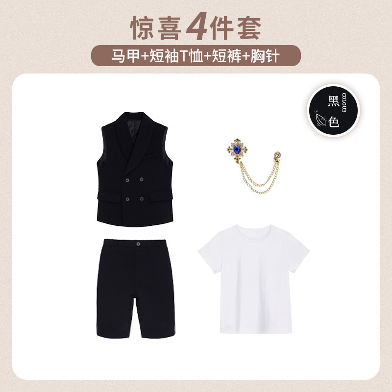 • [반팔 티셔츠] 블랙 4 종 세트 (조끼 + 반바지 + 티셔츠 + 브로치)