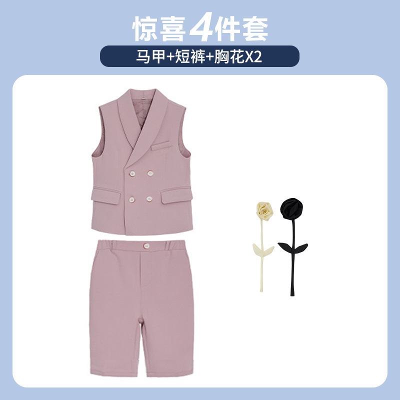 • 핑크 4 종 세트 (조끼 + 반바지 + 브로치 + 나비 넥타이)