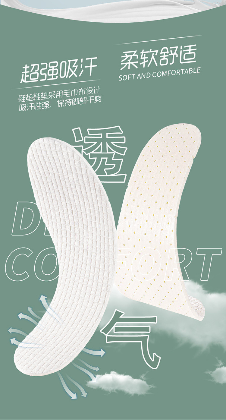 신발 깔창은 땀 흡수성, 냄새 방지성, 통기성, 부드러운 밑창, 편안한 마사지 기능을 갖추고 있으며, 여름용으로 얇게 절단할 수 있습니다.스토어 가기