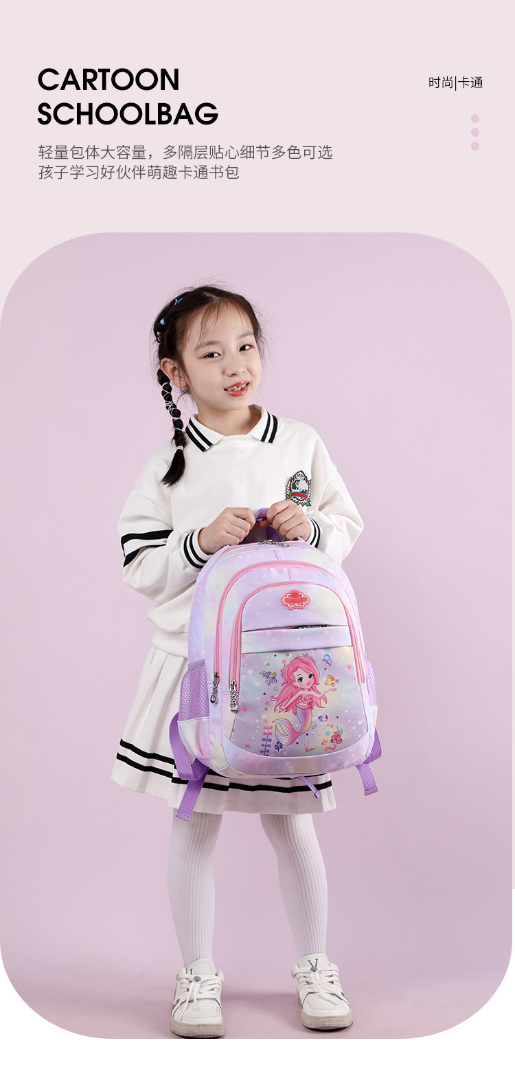 공장 도매 초등학교 책가방 여자 학년 1, 2 및 3 여자 대형 인어 아동 책가방의 부담을 경감스토어 가기
