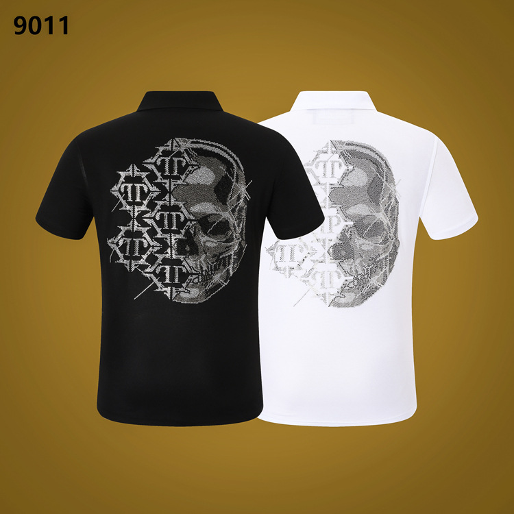 아마존 AliExpress 패션 브랜드 필립 일반 PP 남성용 티셔츠 해골 머리 핫 다이아몬드 반팔 폴로 라펠