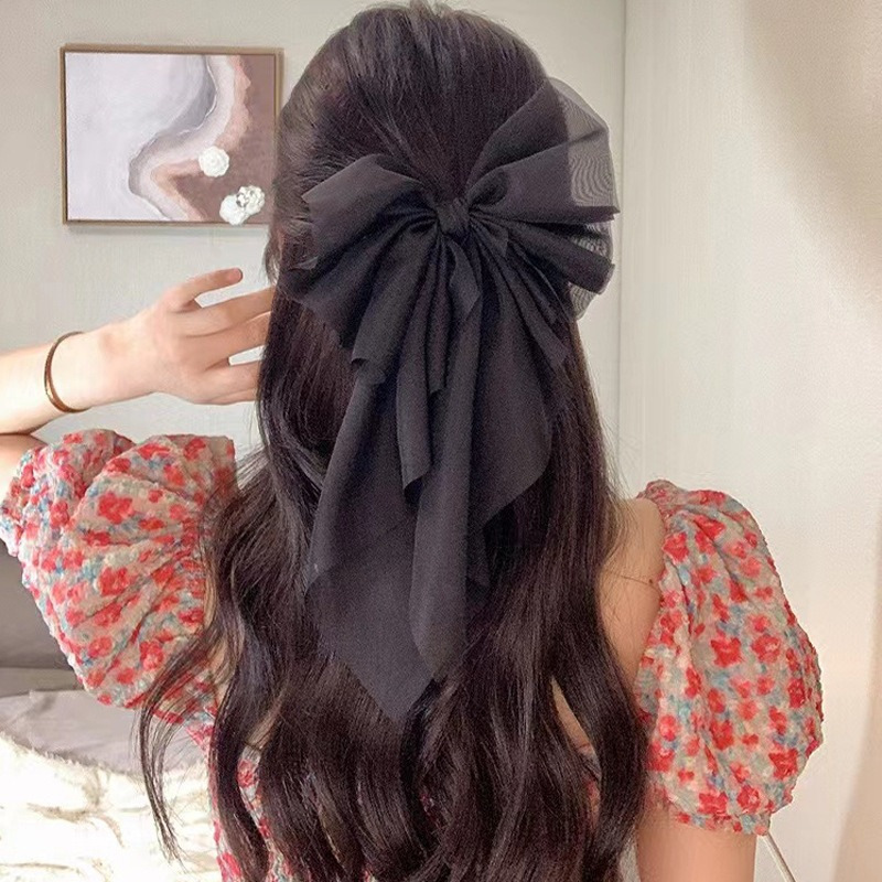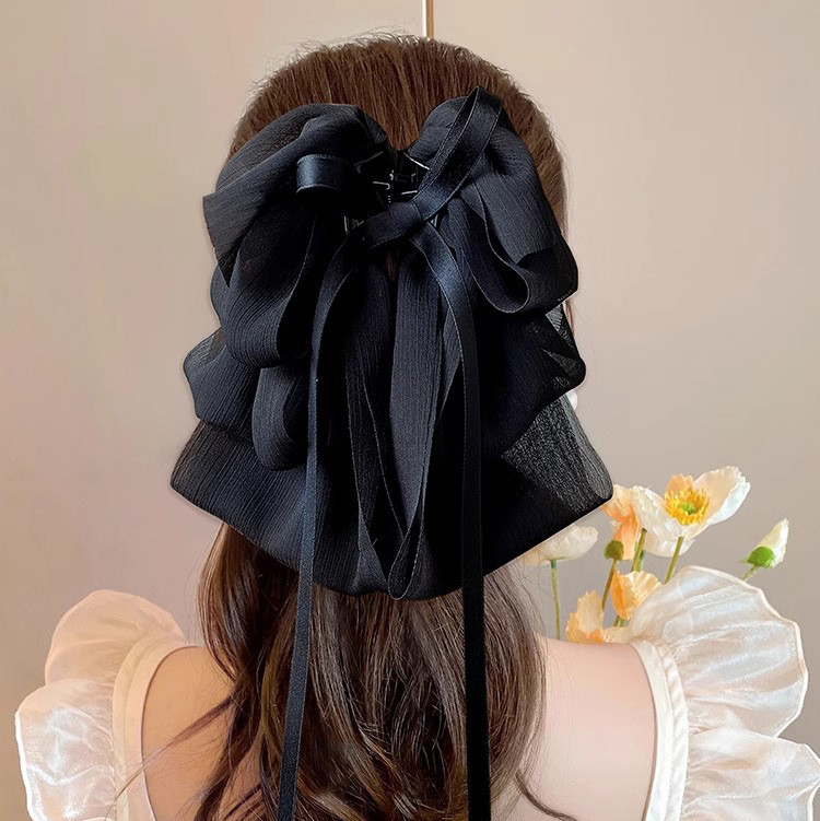 • 블랙 멀티 레이어 새틴 스프링 클립
