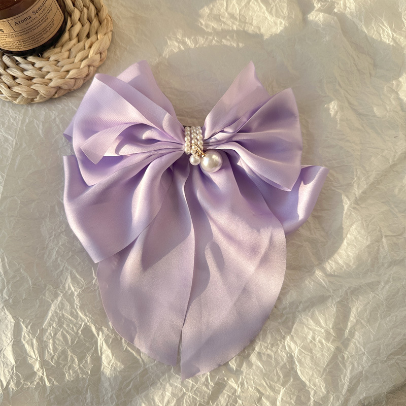 • 다크 퍼플 진주 빛 새틴 봄 클립